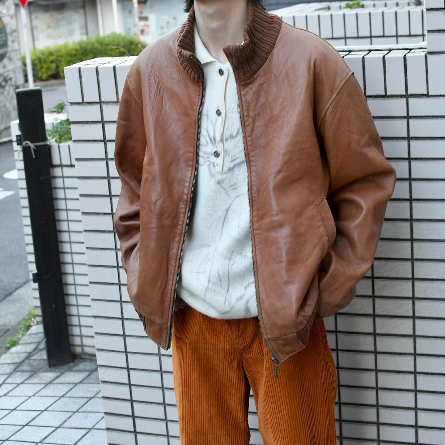 80s France Vintage Belted Leather Jacket シボ革 レザーコート XL 比翼 ベルト付き 80年代 フランス製 McDouglas PARIS