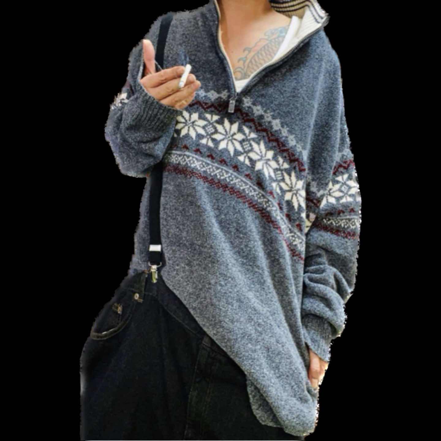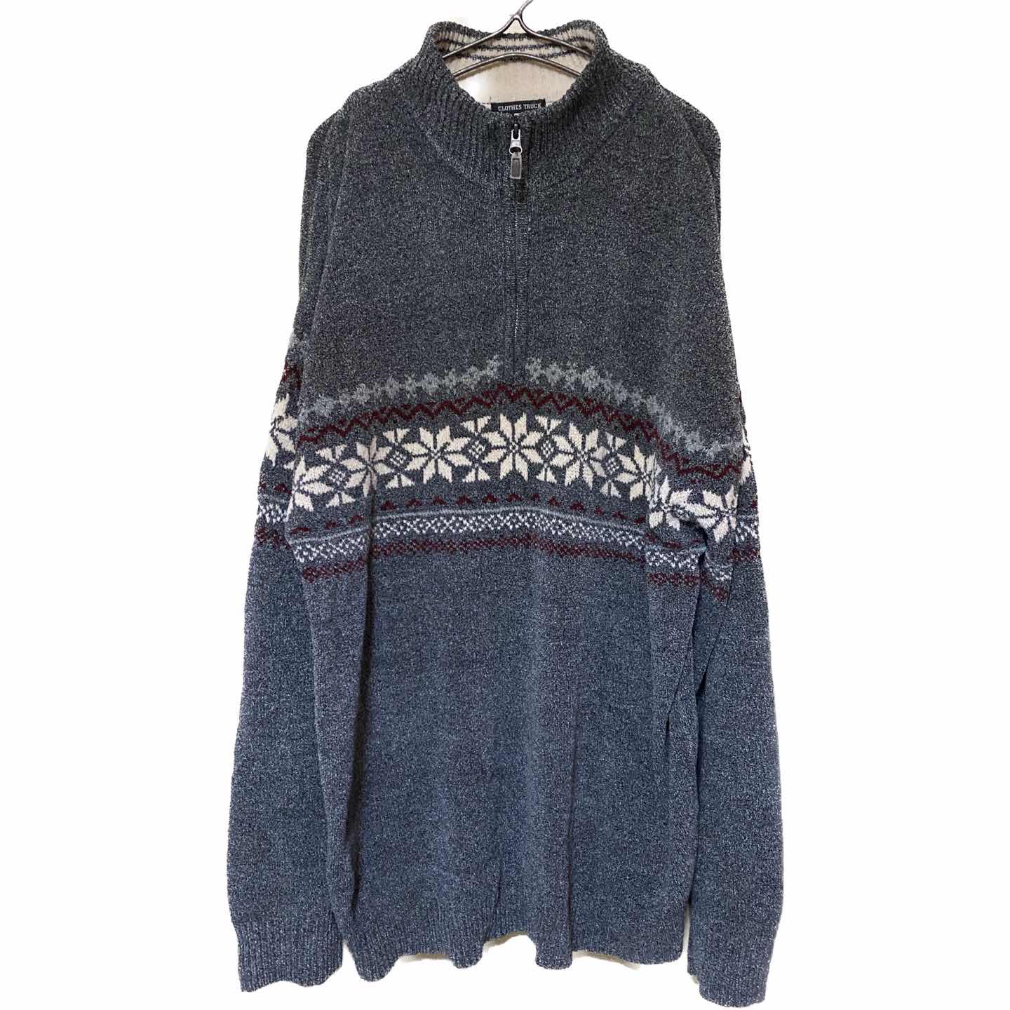 90s 新品同様 ミックスニット ノルディック 霜降り ハーフジップ セーター4L