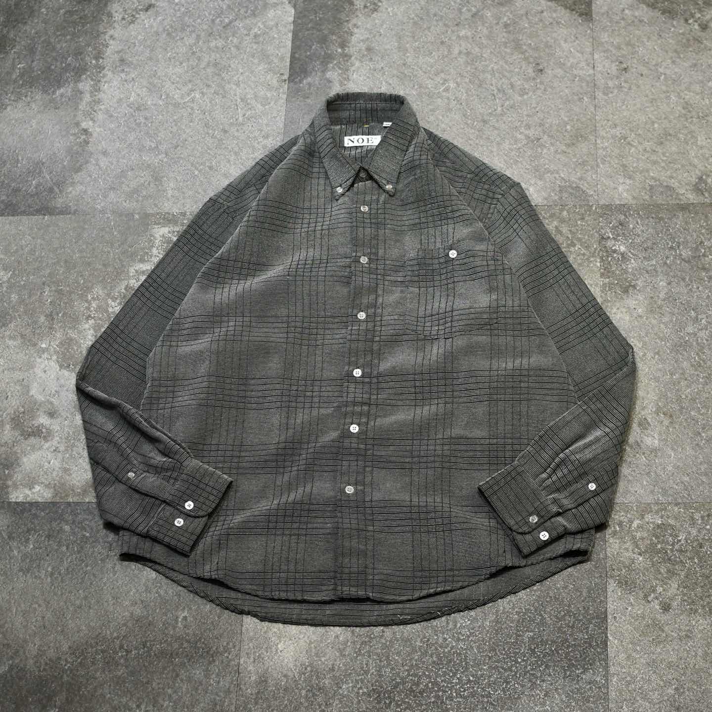 古着 横畝 デザインシャツ チェックシャツ ボタンダウンシャツ グレー