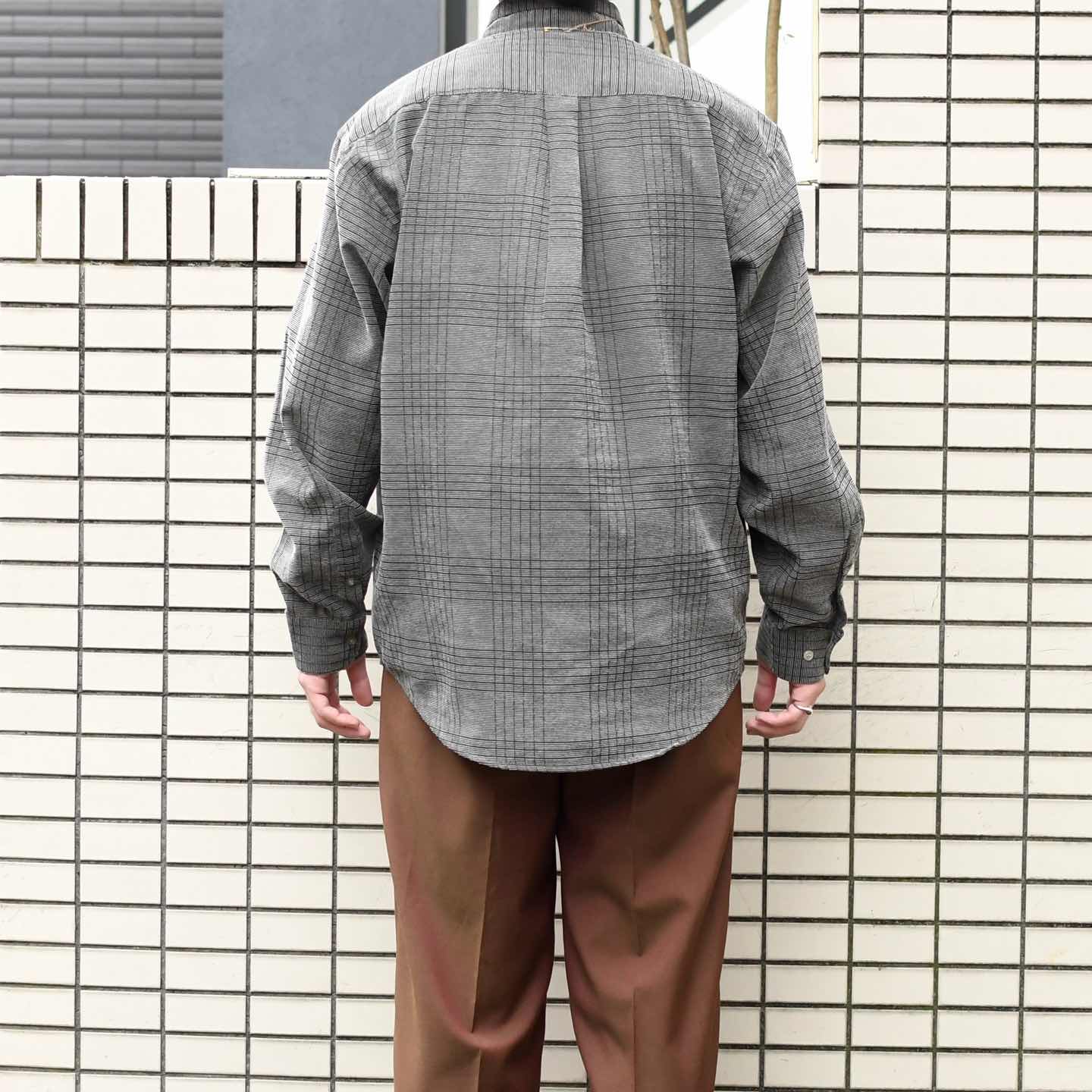 SIZE:42 着丈72cm(前)79cm(後) 肩幅52cm 身幅64cm 袖丈62cm fabric/質感よりpoly 着用画像 177cm/64kg コーデュロイのような畝のある生地に、 チェック柄が織りで施された贅沢な1着。 元々コーデュロイは縦畝が多く、横畝の個体は 滅多に見掛けませんが、こちらはその横畝で 仕立てられ、一般的なコーデュロイシャツと 差別化出来るのも◎ 少し変わり種な個体でありながら、コーデや 街に馴染む、使い勝手の良いアイテムです。 個人的推しなシャツ。 ※撮影状況により、実物と多少色が異なる場合が ございます。 ※古着を取り扱っているため、気づかない汚れや ほつれ等がある場合がございます。 予めご了承ください。 ※サイズは着用感で選んでおり、 表記サイズではございません。 表記サイズは説明欄の最初に記載しております。 古着 オーバーサイズ old vintage ヴィンテージ used 80's 90's アメリカ古着 ユーロ古着 POLO RALPH LAUREN Eddie Bauer OLD GAP LANDS' END ランズエンド LLBean エルエルビーン オールドギャップ エディーバウアー ラルフローレン ブルックスブラザーズ Brooks Brothers 灰色 グレー 長袖シャツ シャツ BDシャツ コーデュロイシャツ などがお好きな方 #vintage #オーバーサイズ #old #used #90s #80s #古着 #ヴィンテージ #アメリカ古着 #ユーロ古着 #LLBean #エルエルビーン #EddieBauer #エディーバウアー #oldgap #オールドギャップ #LANDSEND #ランズエンド #NAUTICA #ノーティカ #ラルフローレン #POLORALPHLAUREN #ブルックスブラザーズ #BrooksBrothers #チェックシャツ #BDシャツ #長袖シャツ #デザインシャツ #コーデュロイシャツ #ボタンダウンシャツ