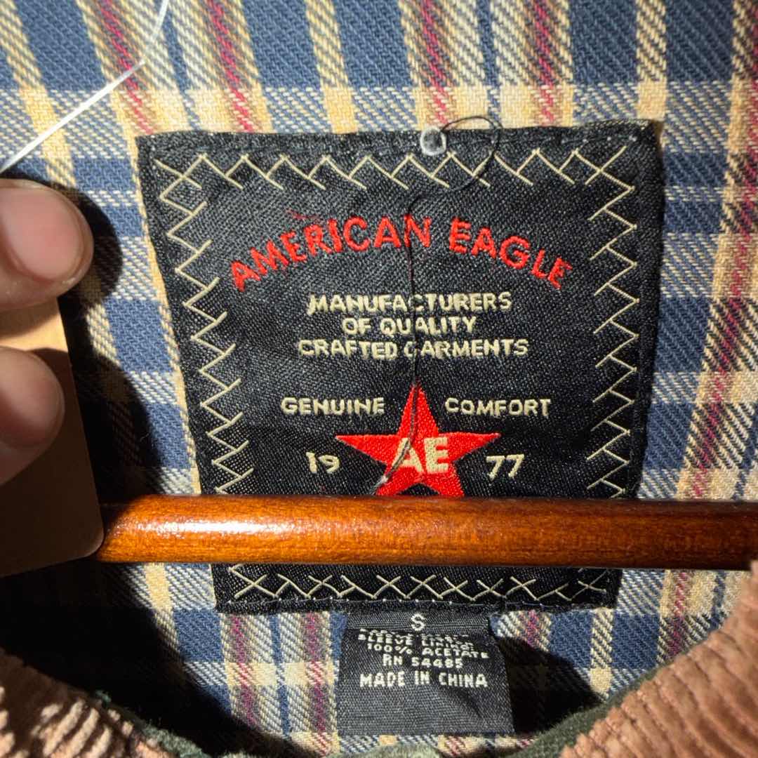 福島県の古着屋「WillRebirth」がセレクトしたAmerican Eagleのハンティングジャケットです。コーデュロイ襟×深緑のボディに、裏地のチェック柄が映えるクラシックなアメカジスタイルの1着です。 しっかりした生地感で、ワーク・アウトドア・カジュアルのどれにも合わせやすく、軽アウターとして長い季節で活躍します。使用感はありますが大きなダメージはなく、古着として良好な状態です。 アメリカンイーグルの中でも雰囲気の良いデザインで、オールド感のあるハンティング系を探している方におすすめです。古着にご理解のある方のみご検討ください。