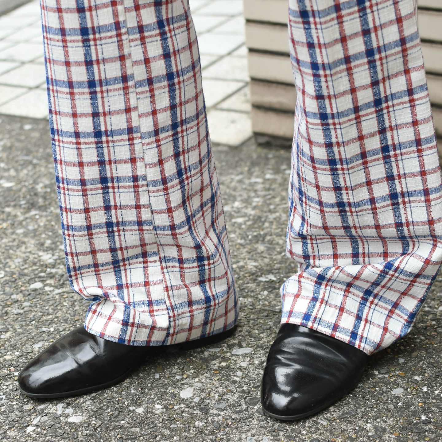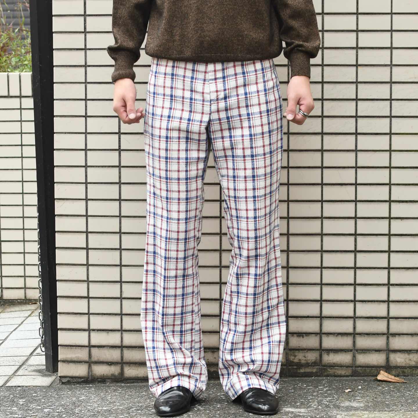 古着 70's チェックパンツ フレアパンツ スラックス フレアスラックス