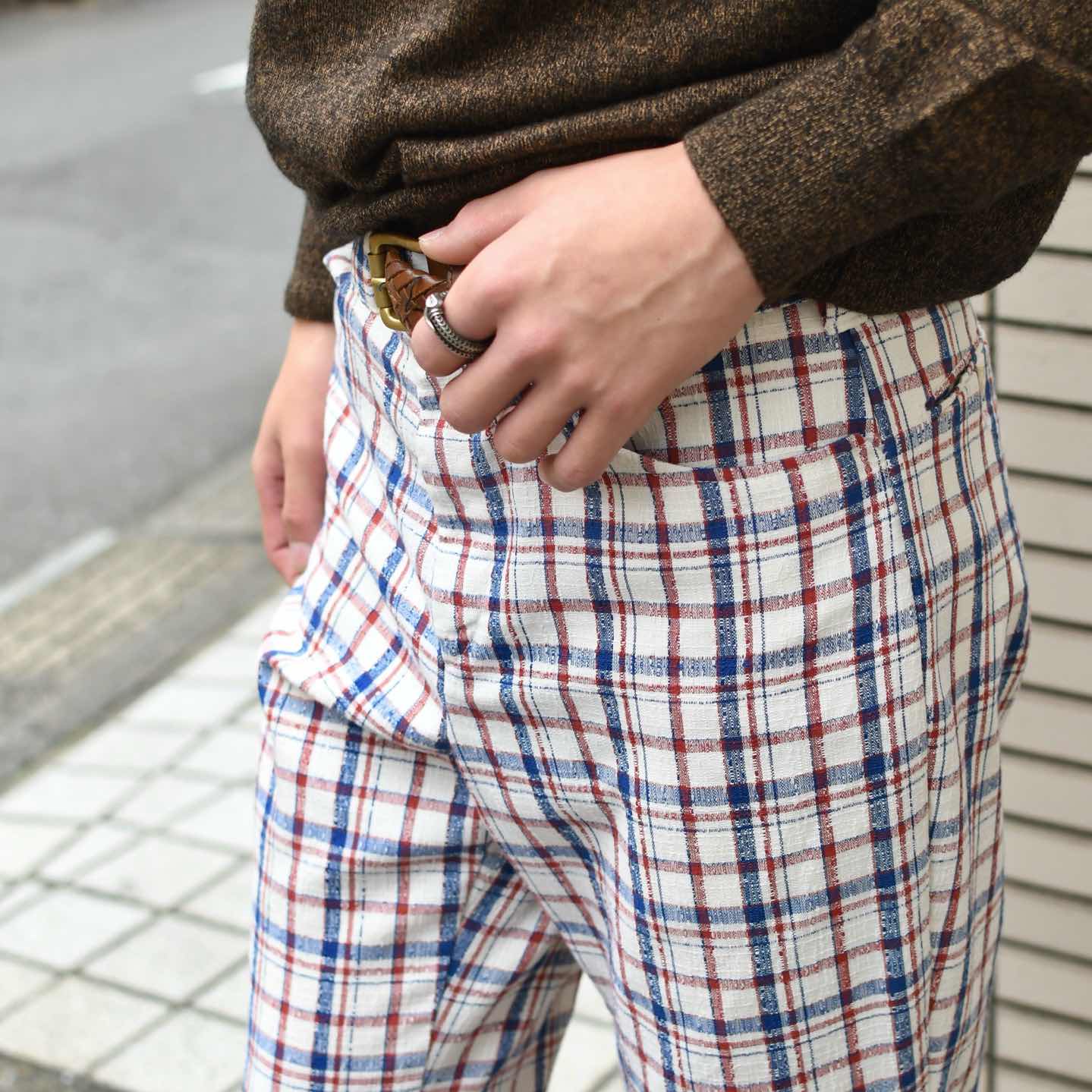 SIZE:- ウエスト76cm 総丈105cm 股下80cm わたり33.5cm 裾幅25cm fabric/質感よりpoly 着用画像 173cm/56kg 毎日ではないけれど、時折パンツを主役にした コーデで街を歩きたくなったり。 キレイな裾広がりなシルエットと 良いレングスサイズ、ショート丈やジャスト丈の トップスと一緒にどうでしょう。 はっきりとしたラインではなく、 掠れたようなラインで施された格子柄だからこそ、 比較的馴染み易いのではないでしょうか。 いつもよりも5分くらい長めに コーデを考えたりして... あの時間を楽しめる方の元に旅立つ気がします。 ※裾上げ等のレングス直しにつきましては、 裾上げ方法によっては、別途料金が 発生する場合がございます。 購入前に、必ずご連絡お願い致します。 また、購入後の直しには対応出来かねます。 ※撮影状況により、実物と多少色が異なる 場合がございます。 ※古着を取り扱っているため、気づかない汚れや ほつれがある場合がございます。 予めご了承ください。 ※サイズは着用感で選んでおり、 表記サイズではございません。 表記サイズは説明欄の最初に記載しております。 古着 オーバーサイズ old vintage ヴィンテージ used 80's 90's アメリカ古着 ユーロ古着 POLO RALPH LAUREN Eddie Bauer OLD GAP LANDS' END ランズエンド LLBean エルエルビーン オールドギャップ エディーバウアー ラルフローレン ブルックスブラザーズ Brooks Brothers ホワイト 白 アイボリー 生成り チェック柄 ブーツカット などがお好きな方 #vintage #オーバーサイズ #old #used #90s #80s #古着 #ヴィンテージ #アメリカ古着 #ユーロ古着 #LLBean #エルエルビーン #EddieBauer #エディーバウアー #oldgap #オールドギャップ #LANDSEND #ランズエンド #NAUTICA #ノーティカ #ラルフローレン #POLORALPHLAUREN #ブルックスブラザーズ #BrooksBrothers #フレアパンツ #スラックス #ブーツカット #チェックパンツ #70s
