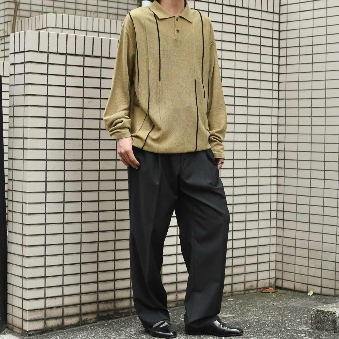 SIZE:XL 着丈71cm 肩幅53cm 身幅61cm 袖丈73cm fabric/acryl・wool・nylon 着用画像 173cm/56kg 一枚でも、インナーとしても、夏以外の時期に 活躍するニットポロですが、単色の個体にどこか 物足りなさを感じた方へ。 左右非対称に施されたデザインに、 落ち着きのあるカラー。 大人びた印象は残しつつ、遊び心のある1着へと 昇華した個体です。 程よく肩の力を抜きつつも、カジュアル過ぎない、 そんな絶妙な雰囲気を纏うことの出来る 逸品としておすすめです。 ※撮影状況により、実物と多少色が異なる場合が ございます。 ※古着を取り扱っているため、気づかない汚れや ほつれ等がある場合がございます。 予めご了承ください。 ※サイズは着用感で選んでおり、 表記サイズではございません。 表記サイズは説明欄の最初に記載しております。 古着 オーバーサイズ old vintage ヴィンテージ used 80's 90's アメリカ古着 ユーロ古着 POLO RALPH LAUREN Eddie Bauer OLD GAP LANDS' END ランズエンド LLBean エルエルビーン オールドギャップ エディーバウアー ラルフローレン ブルックスブラザーズ Brooks Brothers ベージュ ウールニット ポロシャツ などがお好きな方 #vintage #オーバーサイズ #old #used #90s #80s #古着 #ヴィンテージ #アメリカ古着 #ユーロ古着 #LLBean #エルエルビーン #EddieBauer #エディーバウアー #oldgap #オールドギャップ #LANDSEND #ランズエンド #NAUTICA #ノーティカ #ラルフローレン #POLORALPHLAUREN #ブルックスブラザーズ #BrooksBrothers #ニット #セーター #アクリルニット #ウールニット #デザインニット #ニットポロ #ポロシャツ