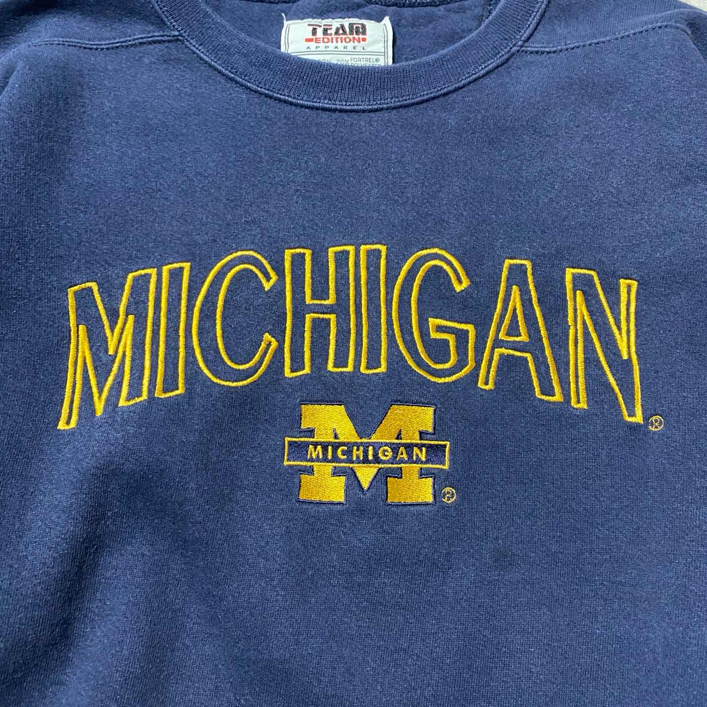 【USA製】90's Michigan ミシガン 刺繍カレッジロゴ ヘビーオンス XL スウェット