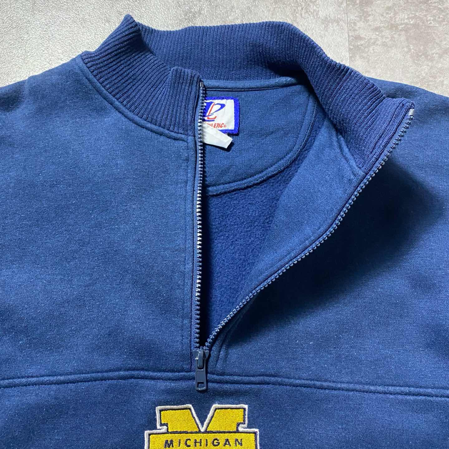 90's Michigan ミシガン センターロゴ ハーフジップ サイドライン スウェット