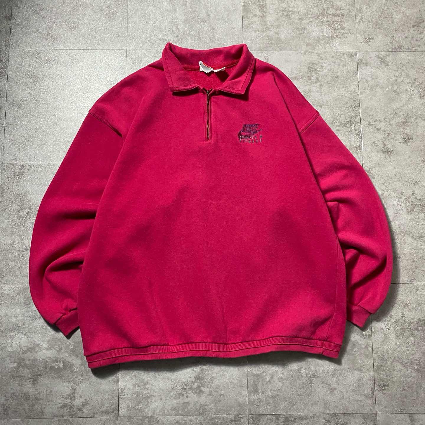 【Size.XL】90s NIKE ナイキ スウォッシュ 刺繍ワンポイント ハーフジップ スウェット