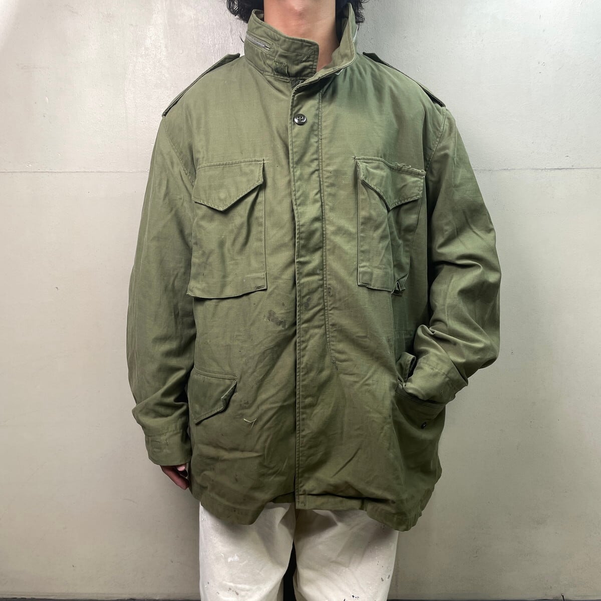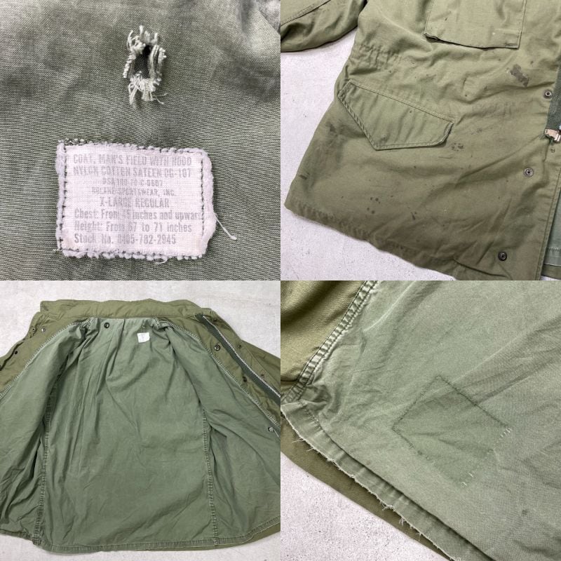■古着 U.S.ARMY 米軍実品 M-65 2nd フィールドジャケット メンズXL USED 70年納品 70年代 70s アルミジップ ヴィンテージ VINTAGE カーキグリーン【ミリタリージャケット】/カーキグリーン 【サイズ】表記 X-LARGE REGULAR モデル身長172cm ※計測値をご確認ください。 着丈…80.5 身幅…66.5 肩幅…56 袖丈…全長68(三角フラップ部分10cm) 【生産国】不明 【素材】ナイロン,コットン 【状態】フロントに汚れがございます。 数か所にダメージがあります。 画像にてご確認ください。 【c251212116】 ※古着は洗濯、検品などのケアを行っております。(新品・デッドストックは洗濯していません。) ※モニターの発色により実物と異なる場合がございます。予めご了承ください。 ※ 海外直輸入USED品になります。