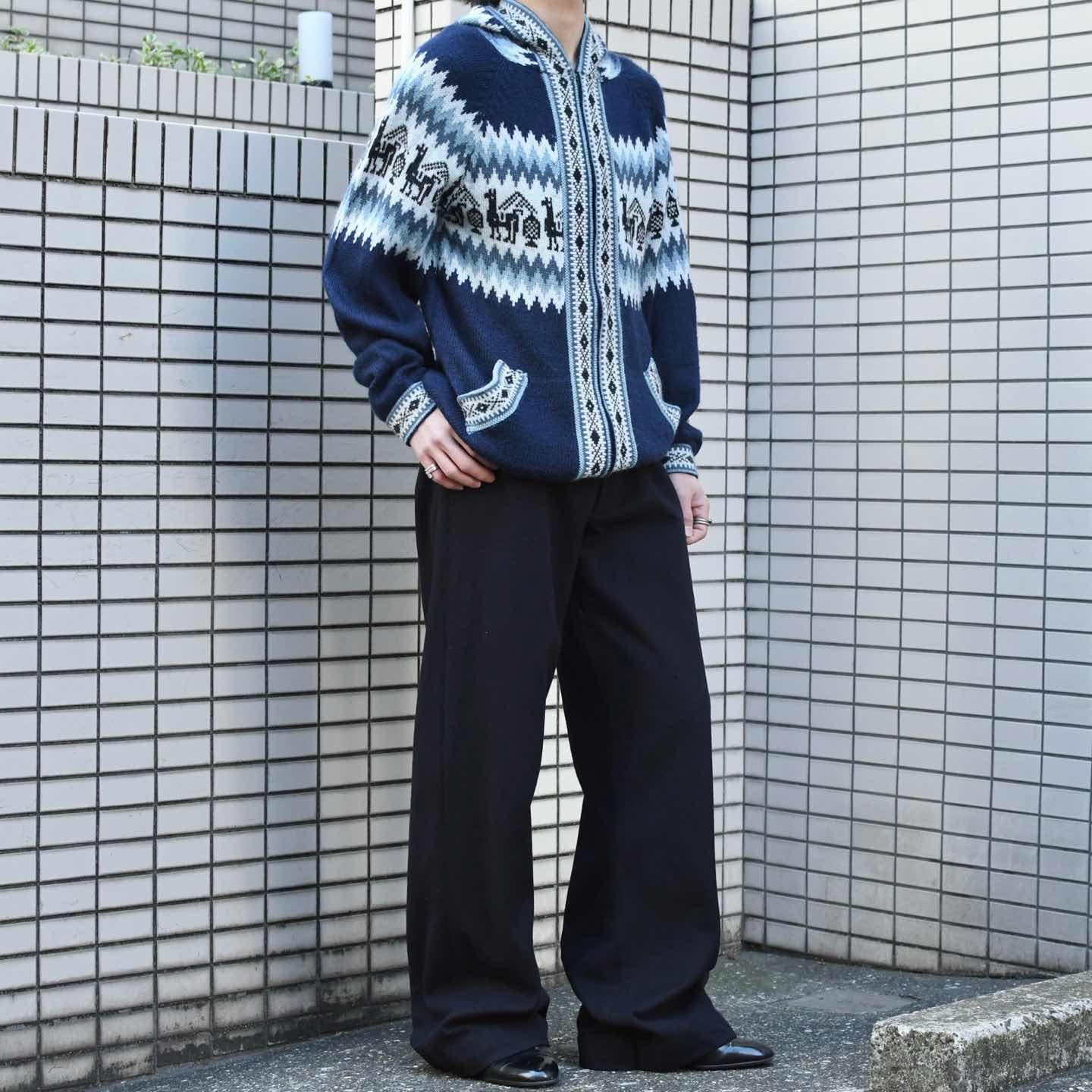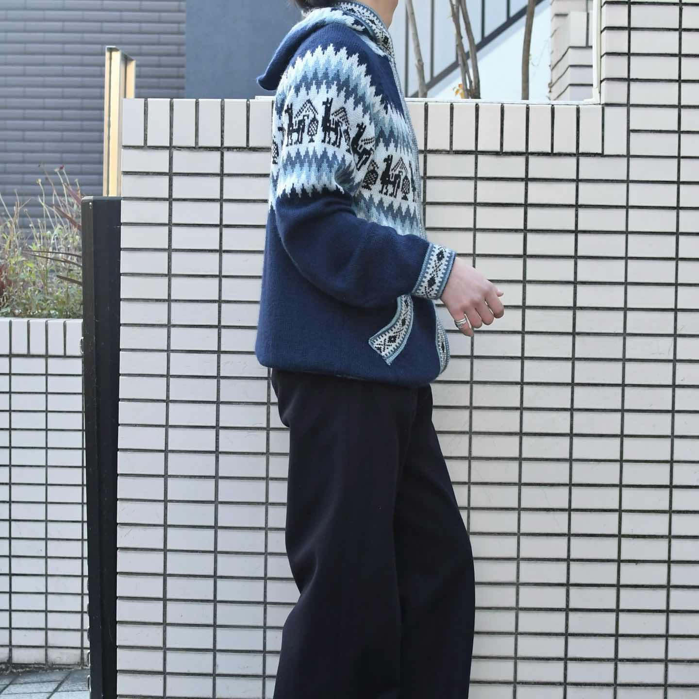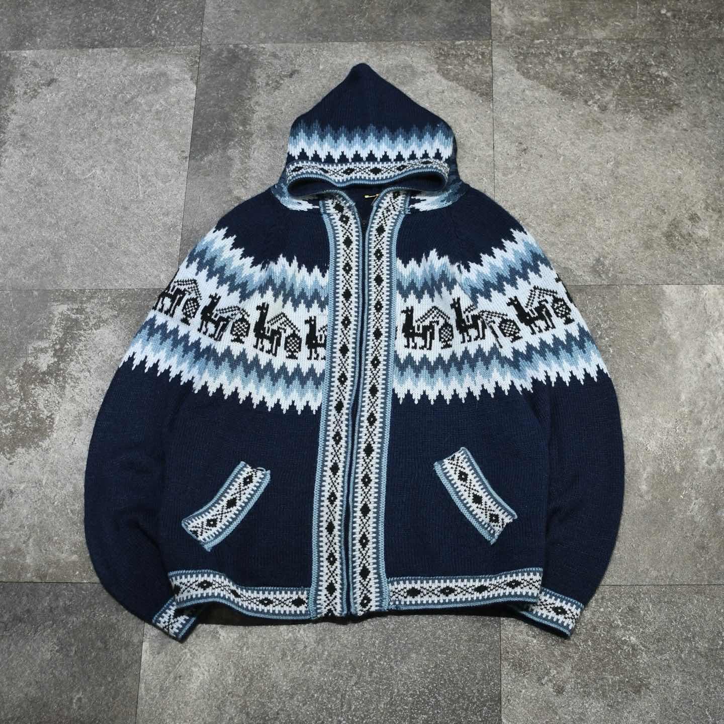 古着 ノルディックニット ニットフーディ デザインニット ジップアップ