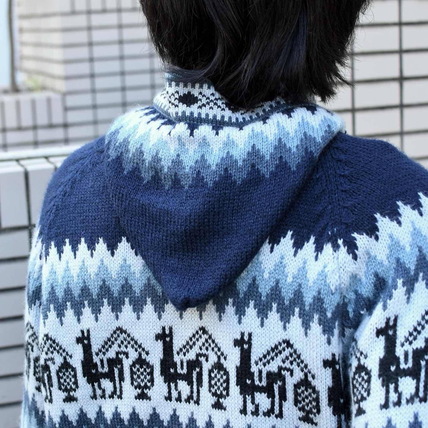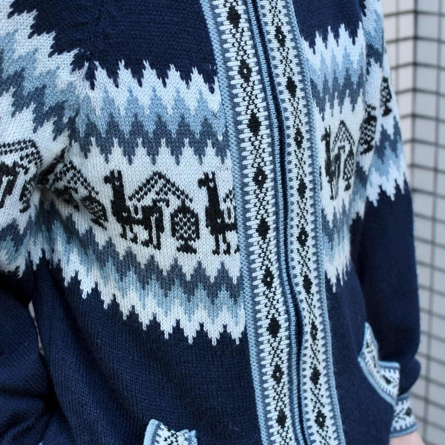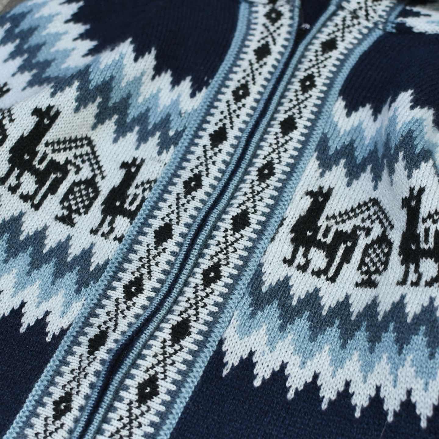 古着 ノルディックニット ニットフーディ デザインニット ジップアップ