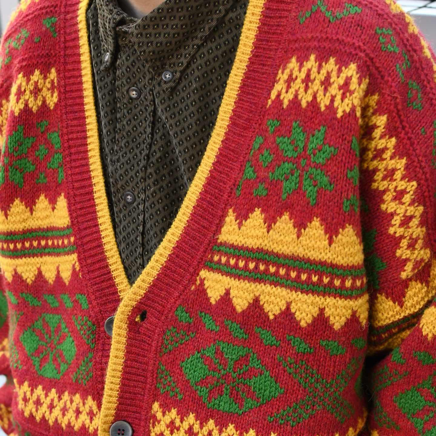 古着 アルパカ混 デザイン カーディガン セーター 総柄 柄