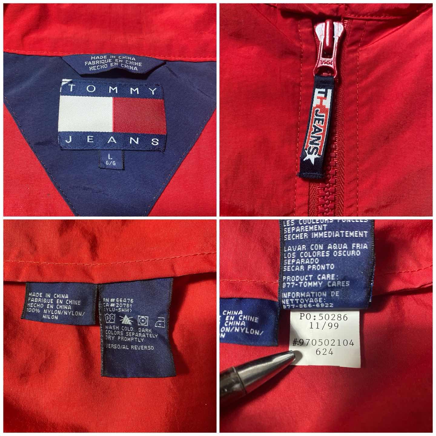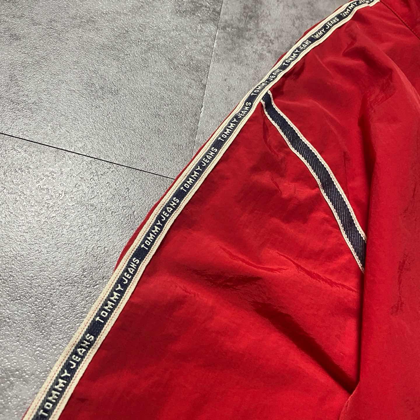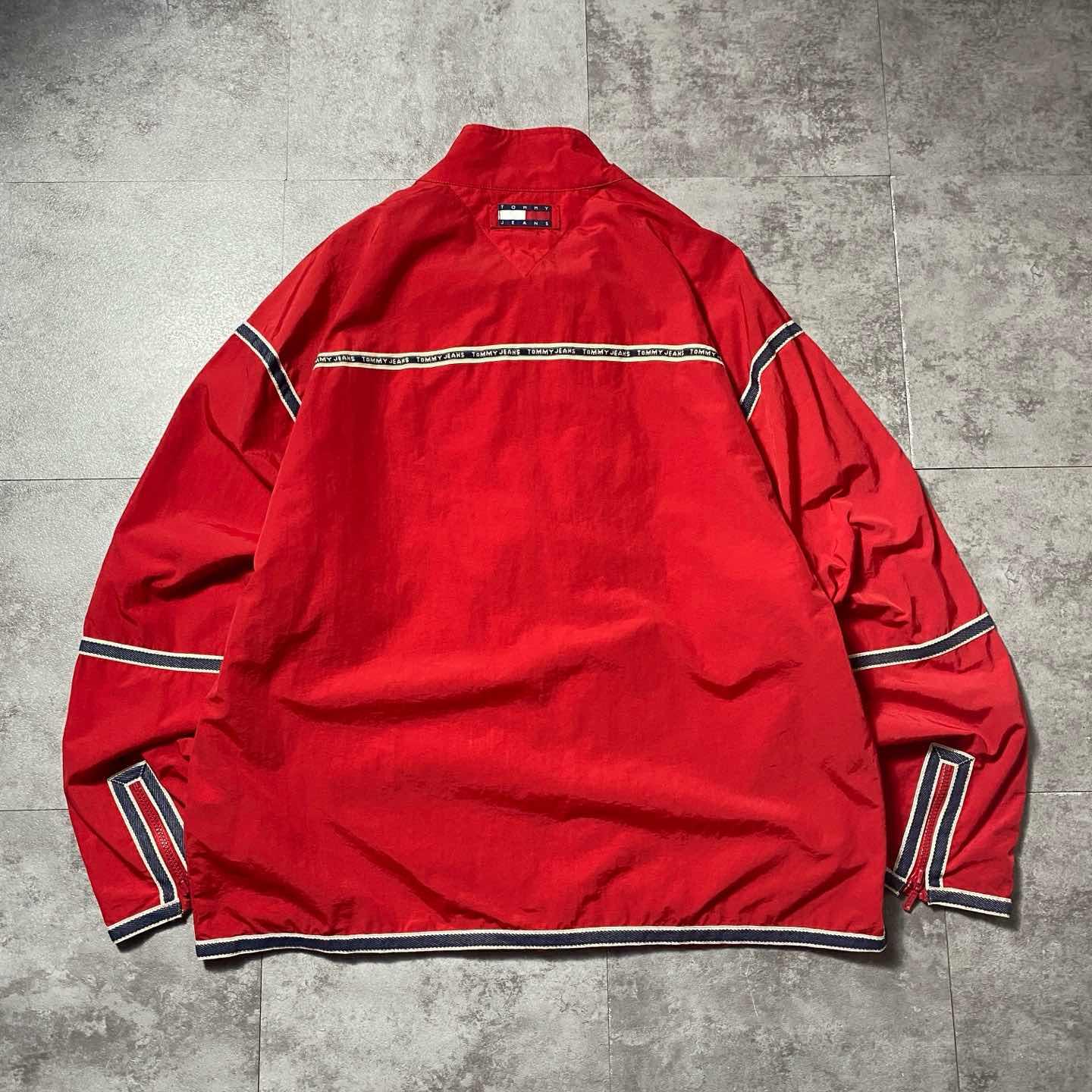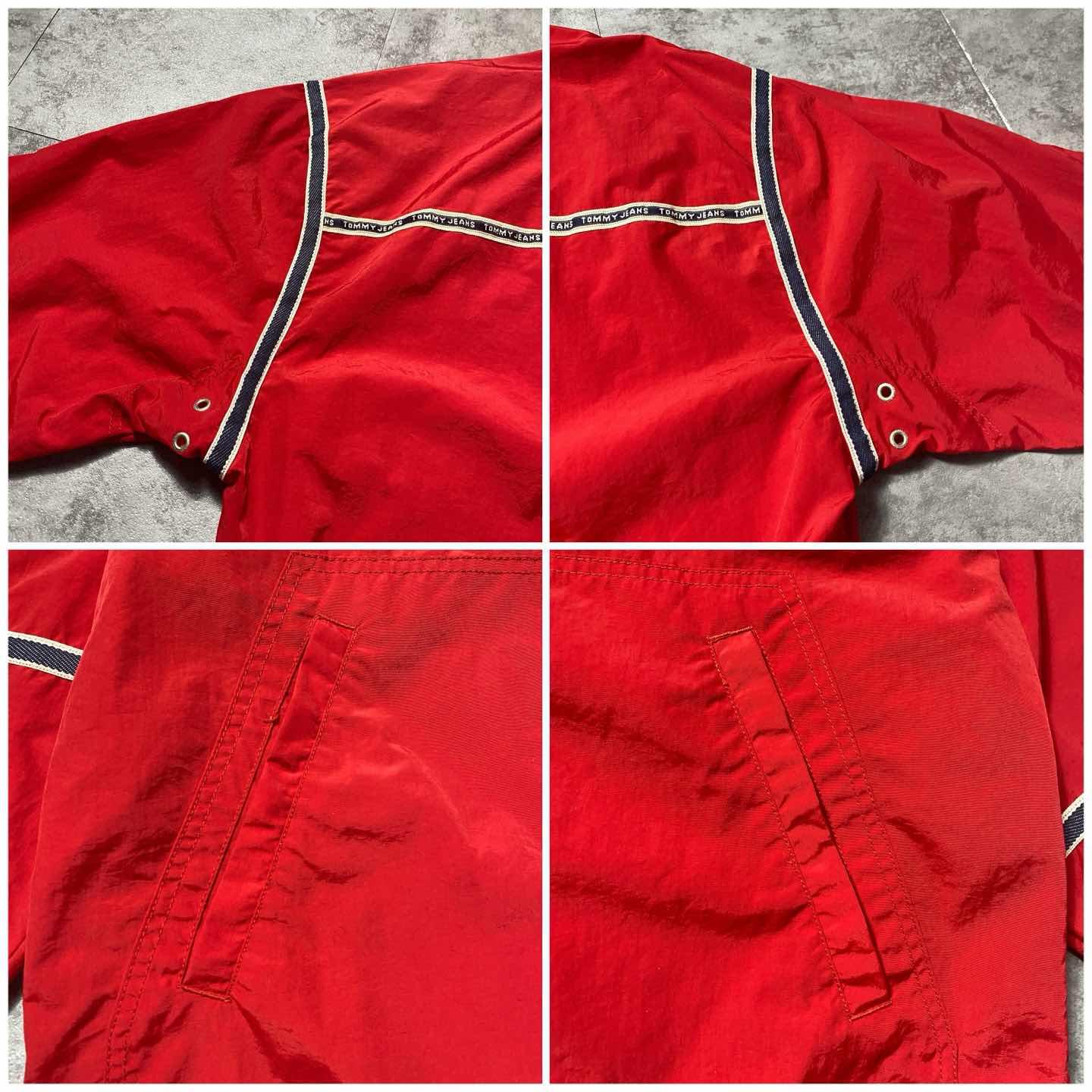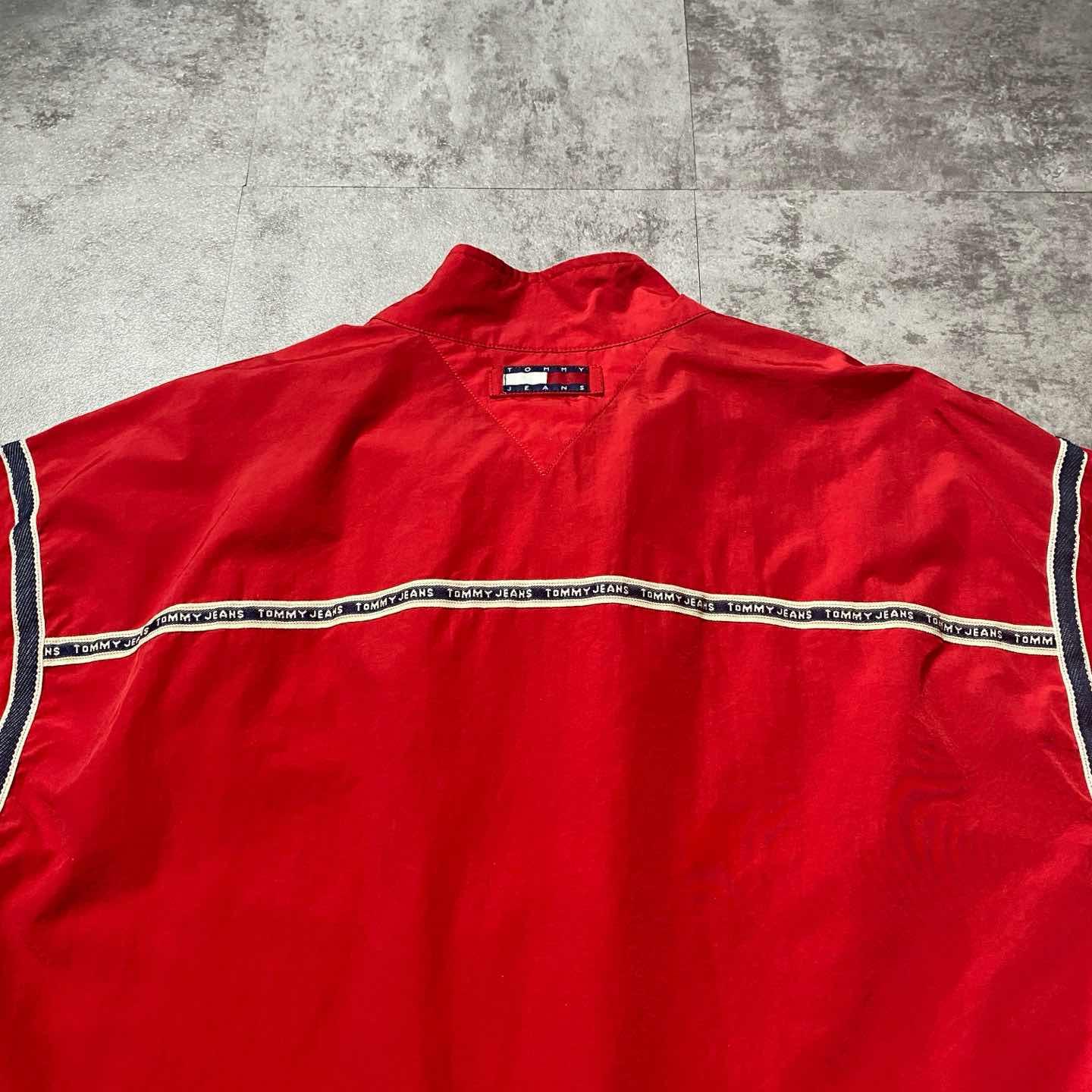 90s トミージーンズ ラベルロゴ サイドロゴテープ レッド ナイロンジャケット