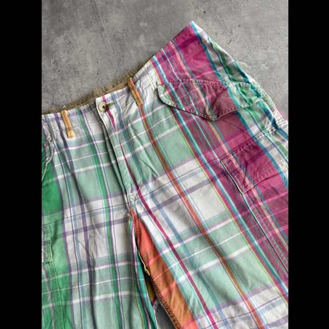 マレーシア製ラルフローレンの マドラスチェックカーゴショーツ ワイドなシルエットと丈感が◎ size:34 ウエスト: 46cm 総丈:52cm 股下:25cm 腿幅:35cm 裾幅:34cm (すべて平置きにて計測) ※採寸に若干の誤差がある場合がございます。 何卒ご了承ください。 出品中の写真につきましては、できるだけ実物の色に近くなるように努めており、日中の自然光にて撮影ですが、色の見え方が実物と若干異なる場合がございます。予めご了承ください。 発送はエコと経費削減の為、簡易包装にて、発送予定です。 古着のため如何なる理由でも、返品不可とさせていただきます。 双方にとって気持ちの良いお取引をさせていただけるように努めてまいりますので、ご理解いただけた方々のご購入をお待ちしております。 他のサイトでも出品していますので、先にご購入いただいた方優先となっております。よろしくお願いします。 最後までお読みいただき、ありがとうございました。 #vintage #80s #90s #oregon #disney #old #russellathletic #jerzees #champion #camber #cabelas #llbean #eddiebauer #patagonia #nautica #ralphlauren #wrangler #nike #adidas #huf #carhartt #pendleton
