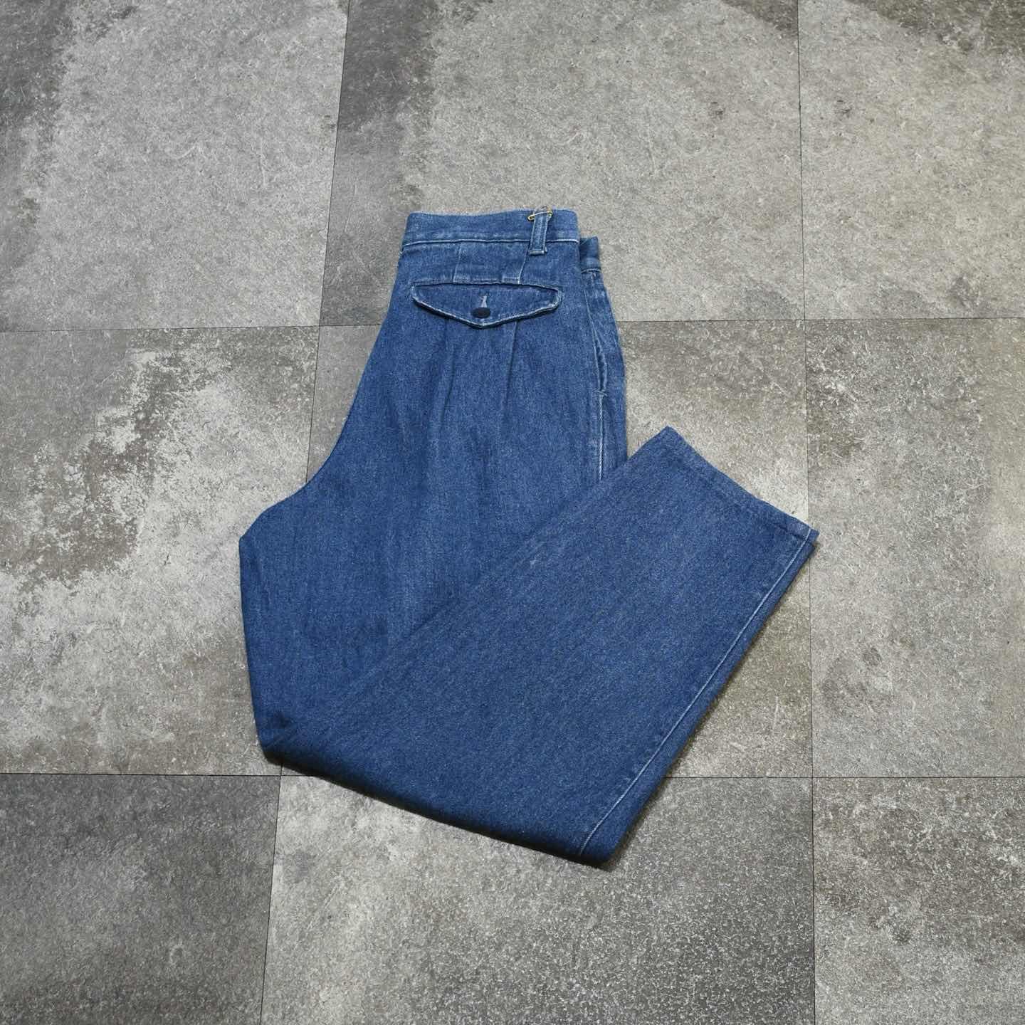 SIZE:- ウエスト73cm 総丈100cm 股下71cm わたり39cm 裾幅18cm fabric/cotton 着用画像 173cm/56kg カジュアルなボトムスとして多くの人が手元に置く デニムですが、こちらは少し変わり種ではないでしょうか。 インバーテッドタックの他に、ギャザーのように いくつかのタックが施され、 バルーンシルエットのようなシルエットを楽しめる 一本。 そんなキレイなシルエットだからこそ、 ドレスシューズとの相性も良く、シャツとの 合わせも提案したいデニムです。 LEVI'Sなどが手掛けるデニムとは一味違った デニムとして気分転換に、アクセントとして スタイリングの幅を広げてくれるのではないでしょうか。 ※裾上げ等のレングス直しにつきましては、 購入前に、必ずご連絡お願い致します。 ※撮影状況により、実物と多少色が異なる 場合がございます。 ※古着を取り扱っているため、気づかない汚れや ほつれがある場合がございます。 ※サイズは着用感で選んでおり、 表記サイズは説明欄の最初に記載しております。 old vintage ヴィンテージ used 80's 90's アメリカ古着 ユーロ古着 POLO RALPH LAUREN Eddie Bauer OLD GAP LANDS' END ランズエンド LLBean エルエルビーン オールドギャップ エディーバウアー ラルフローレン ブルックスブラザーズ Brooks Brothers などがお好きな方 #vintage #used #90s #80s #古着 #ヴィンテージ #アメリカ古着 #ユーロ古着 #LLBean #エルエルビーン #EddieBauer #エディーバウアー #oldgap #オールドギャップ #LANDSEND #NAUTICA #ラルフローレン #POLORALPHLAUREN #BrooksBrothers #デニム #デニムパンツ