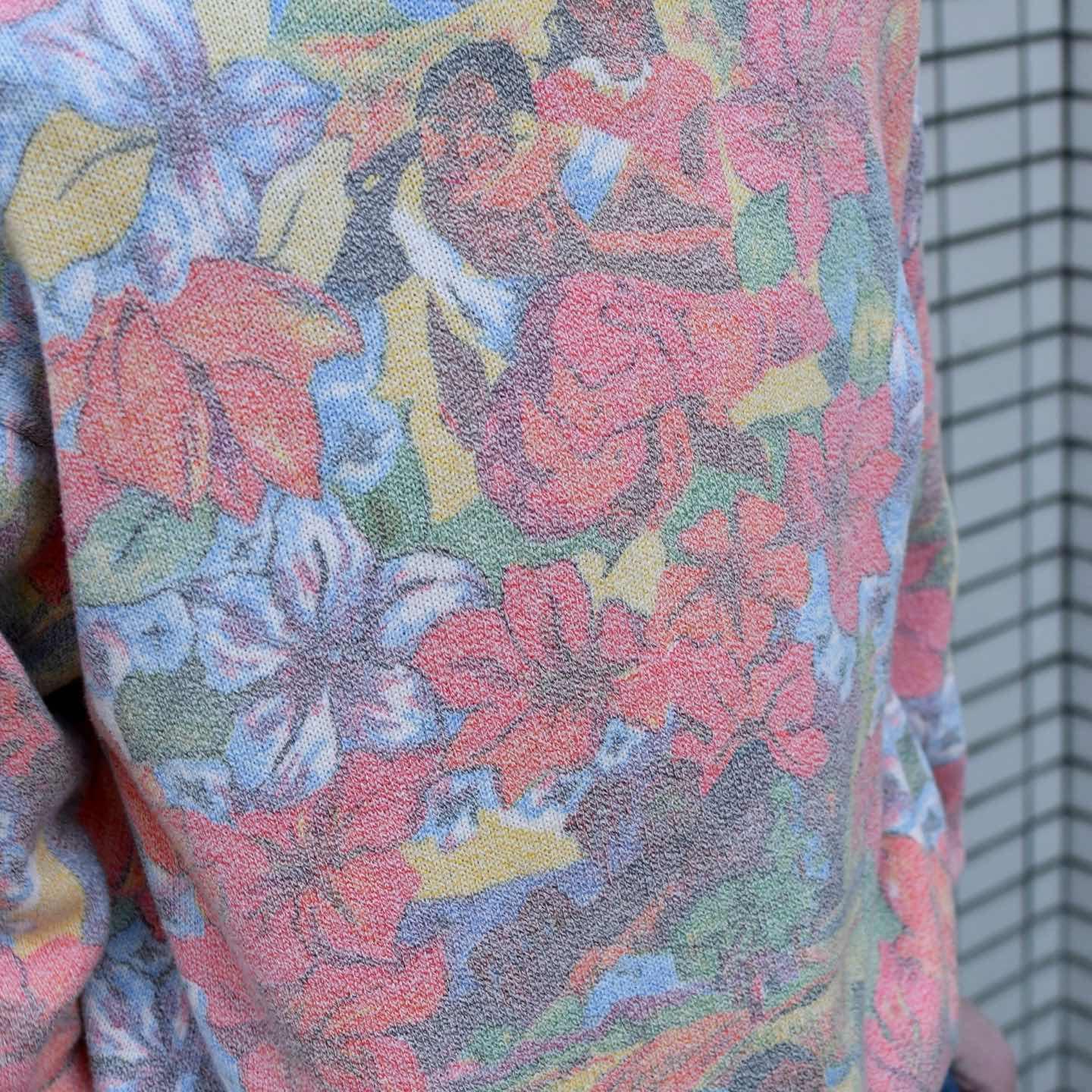 SIZE:- 着丈63cm 肩幅60cm 身幅60cm 袖丈52cm fabric/質感よりcotton 着用画像 173cm/56kg 通常ニットは”編み”で柄を表現するものの、 こちらはプリントで柄を表現した逸品。 個人的にも初見ですし、尚且つ洗濯や着るにつれて 馴染むのが◎ 肌寒い季節に取り入れる南国柄、恐らく一部の層の またその一部に深く刺さるような1着かと思いますが、 こんなアイテムほど心躍りますし、 洒落たスタイリングの”抜け”担当としても 差し込んでみてはどうでしょう。 個人的推し。 ※撮影状況により、実物と多少色が異なる場合が ございます。 ※古着を取り扱っているため、気づかない汚れや ほつれ等がある場合がございます。 ※サイズは着用感で選んでおり 表記サイズは説明欄の最初に記載しております。 old vintage ヴィンテージ used 80's 90's アメリカ古着 ユーロ古着 POLO RALPH LAUREN Eddie Bauer OLD GAP LANDS' END ランズエンド LLBean エルエルビーン オールドギャップ エディーバウアー ラルフローレン ブルックスブラザーズ Brooks Brothers ピンク などがお好きな方 #vintage #オーバーサイズ #old #used #90s #80s #古着 #ヴィンテージ #アメリカ古着 #ユーロ古着 #LLBean #エルエルビーン #EddieBauer #エディーバウアー #oldgap #オールドギャップ #LANDSEND #ランズエンド #NAUTICA #ノーティカ #ラルフローレン #POLORALPHLAUREN #ブルックスブラザーズ #BrooksBrothers #デザインニット #ニット #セーター #コットンニット #フルプリント #総柄 #柄