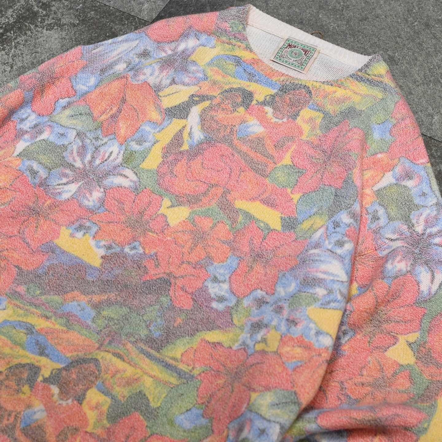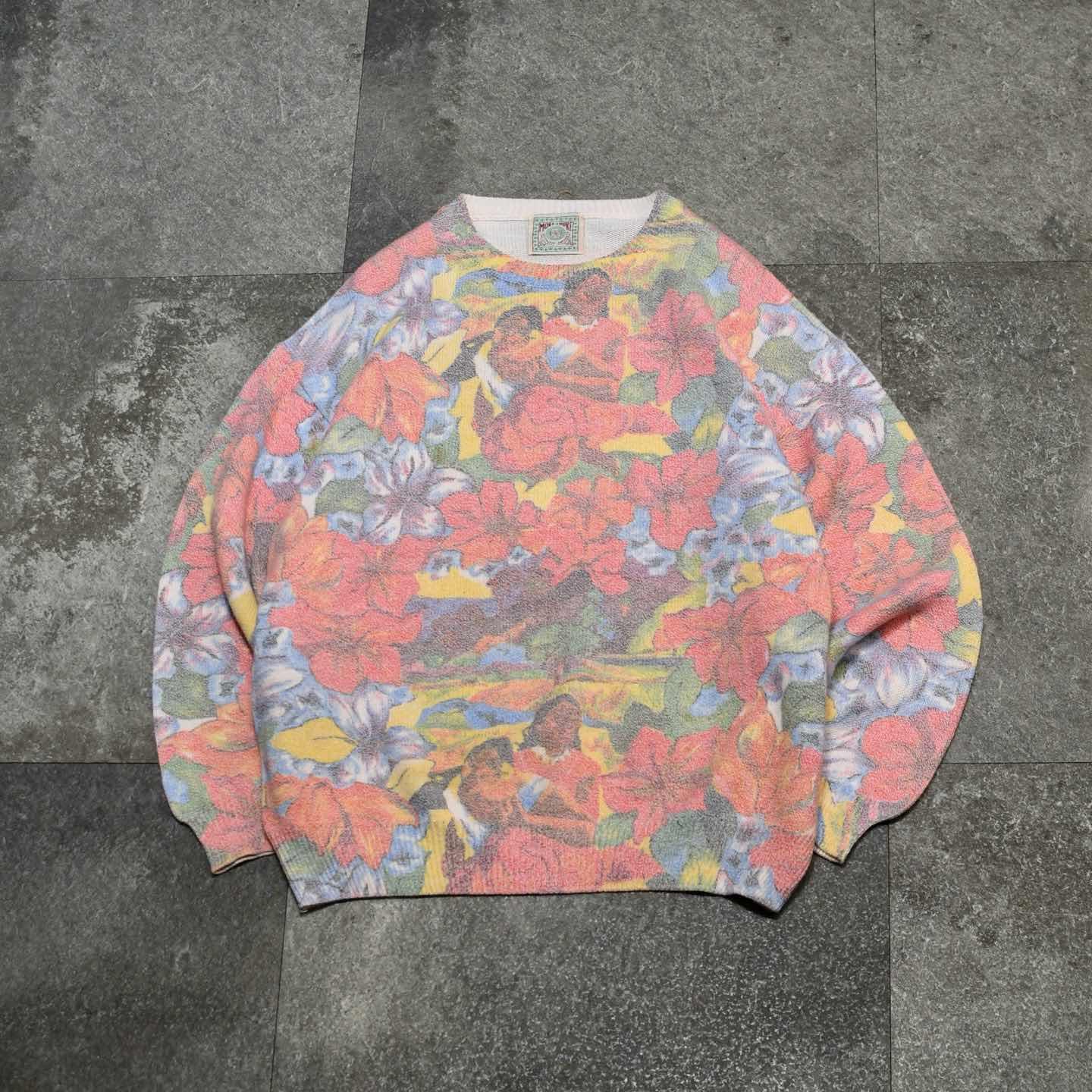 古着 フルプリント ニット セーター コットンニット デザインニット 総柄 柄