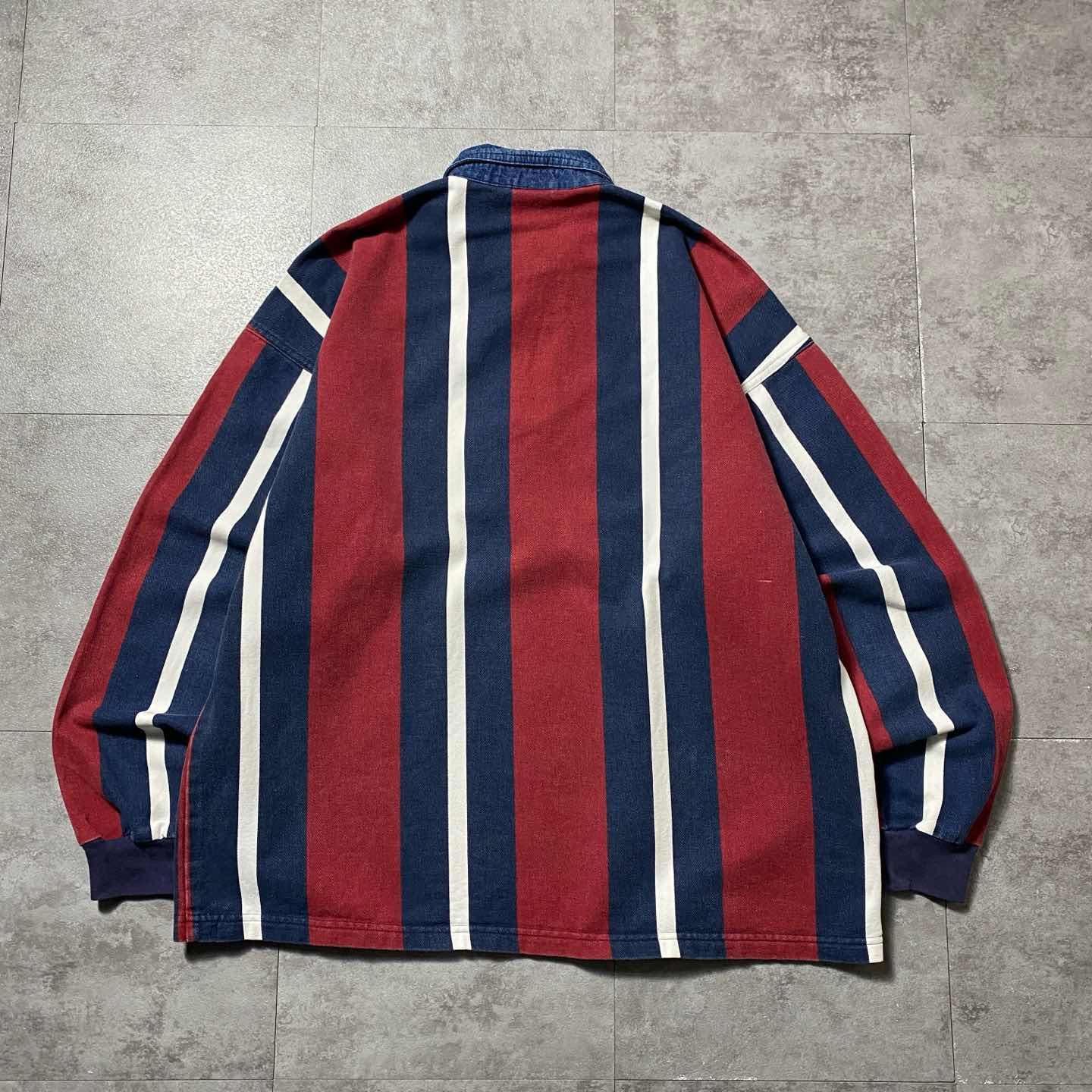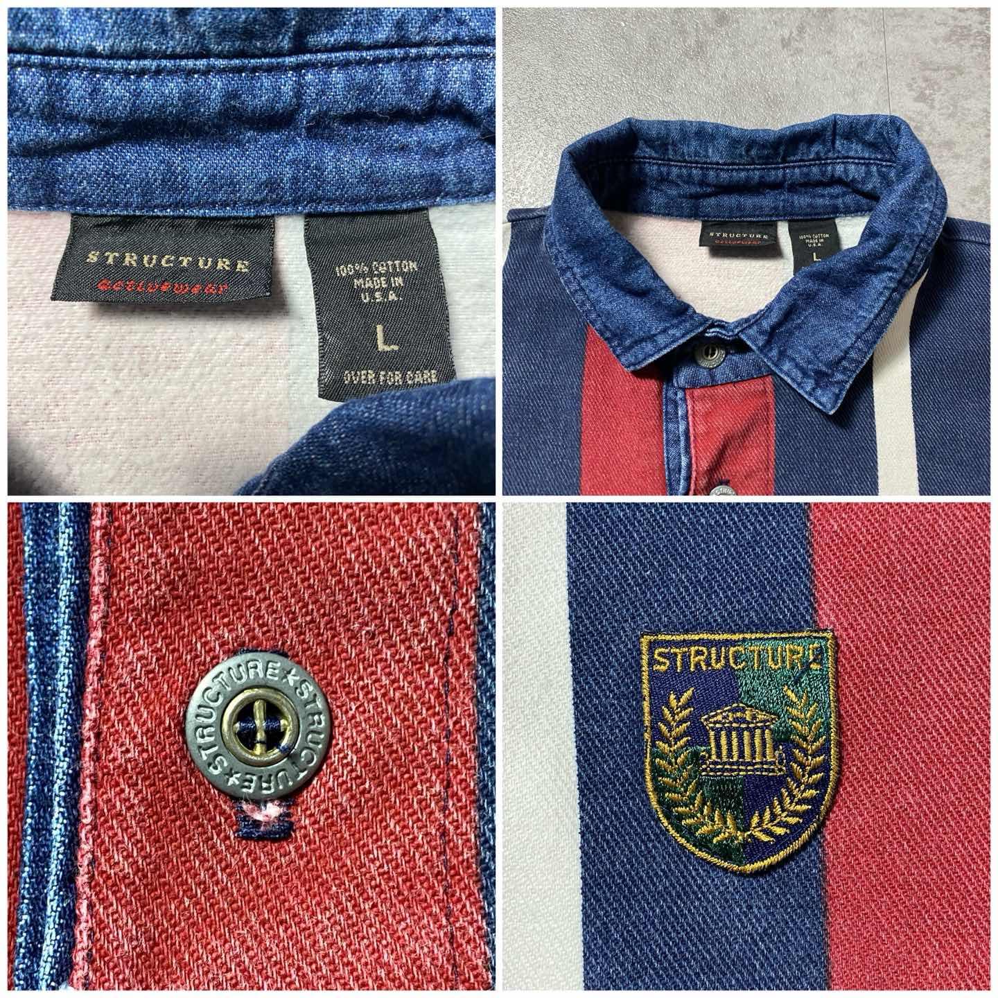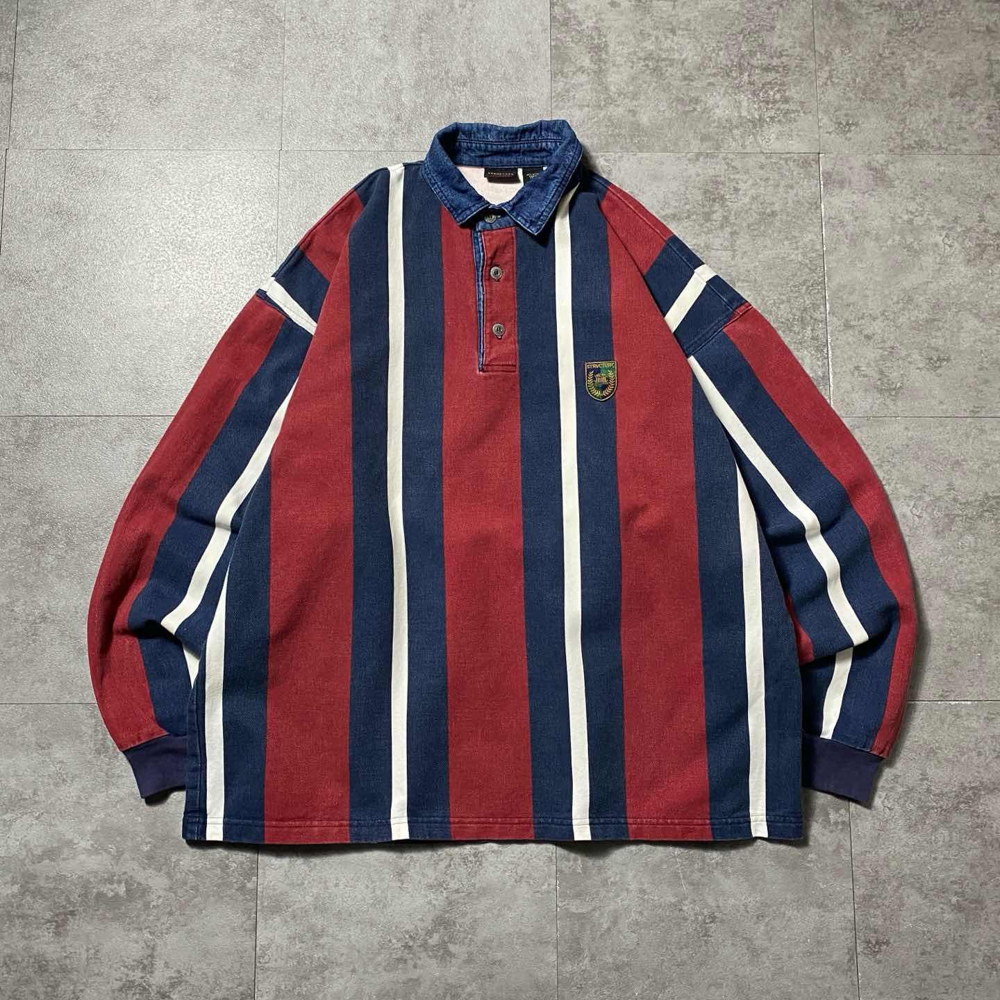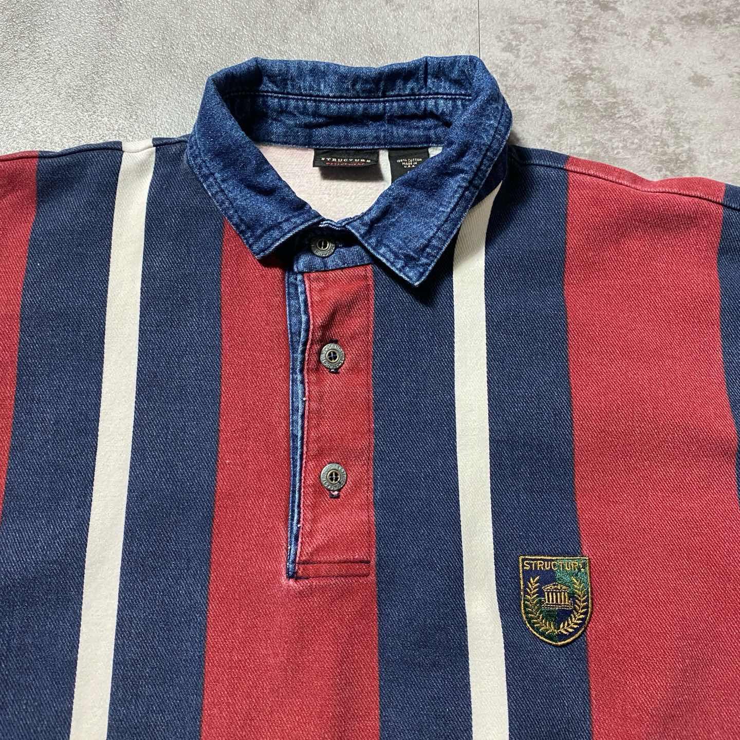 90s Structure ワッペン ストライプ デニム襟 ポロシャツ