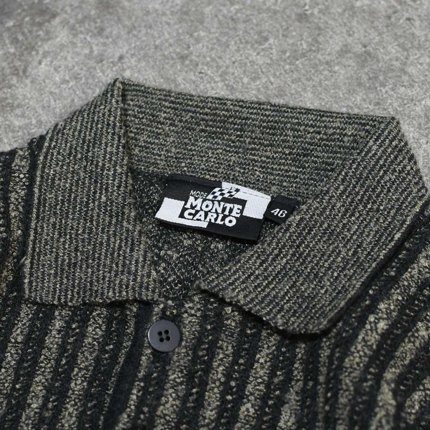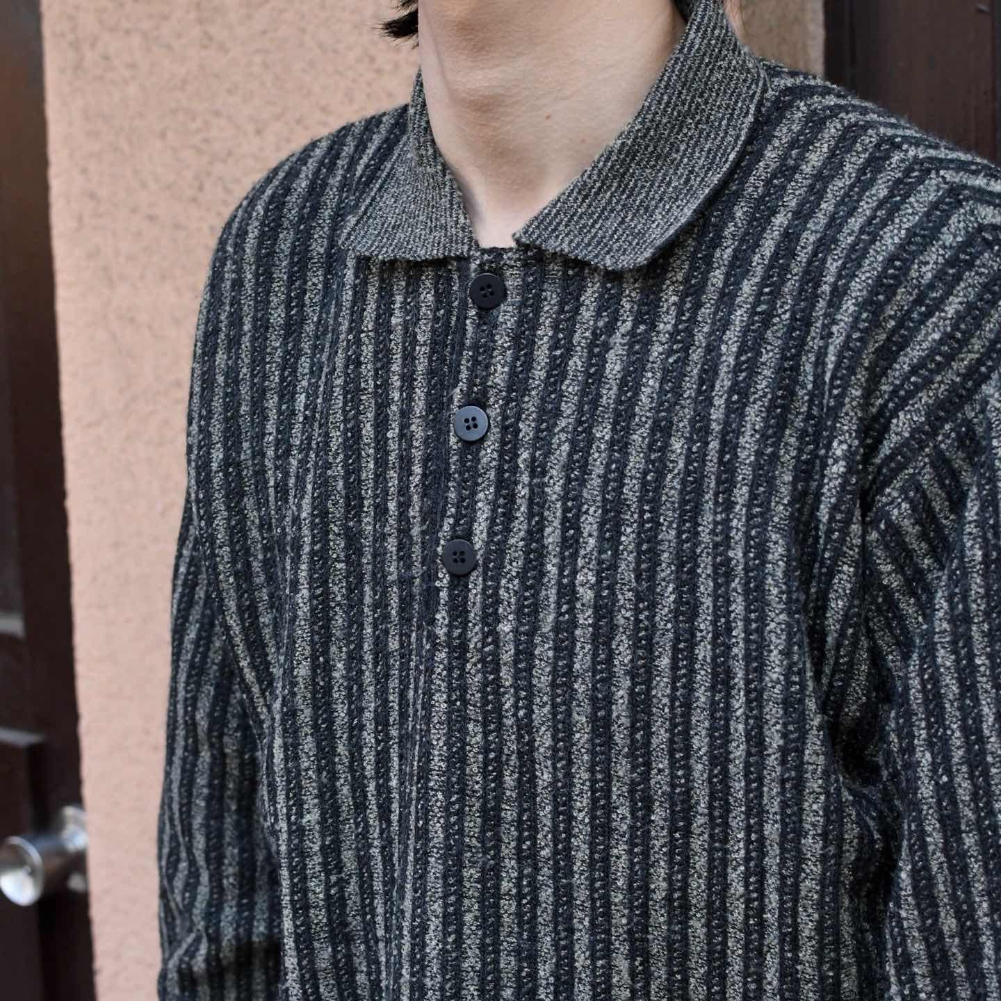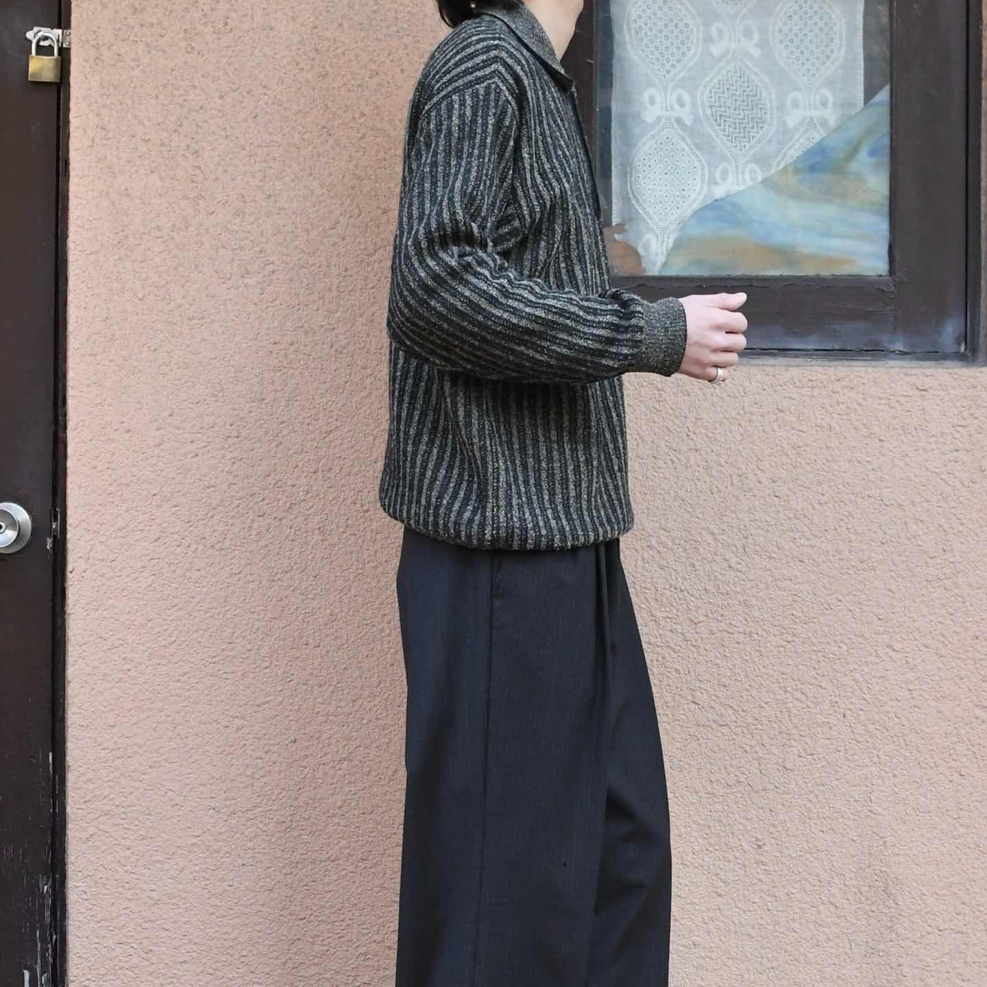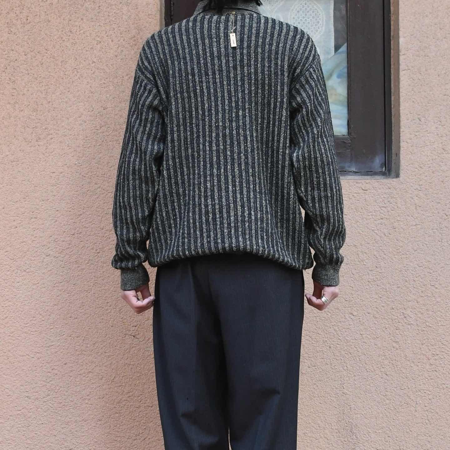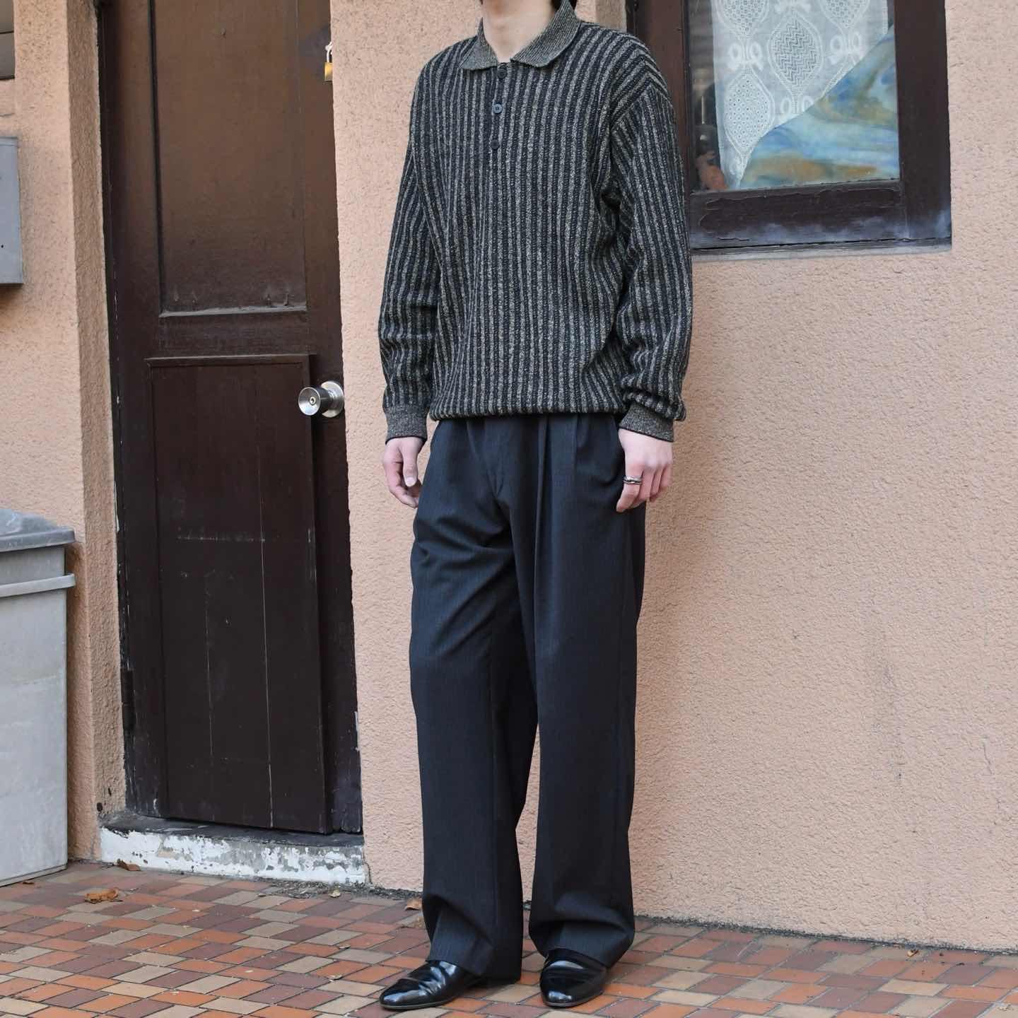 古着 ストライプ ニットポロ ニット セーター デザインニット チャコールグレー