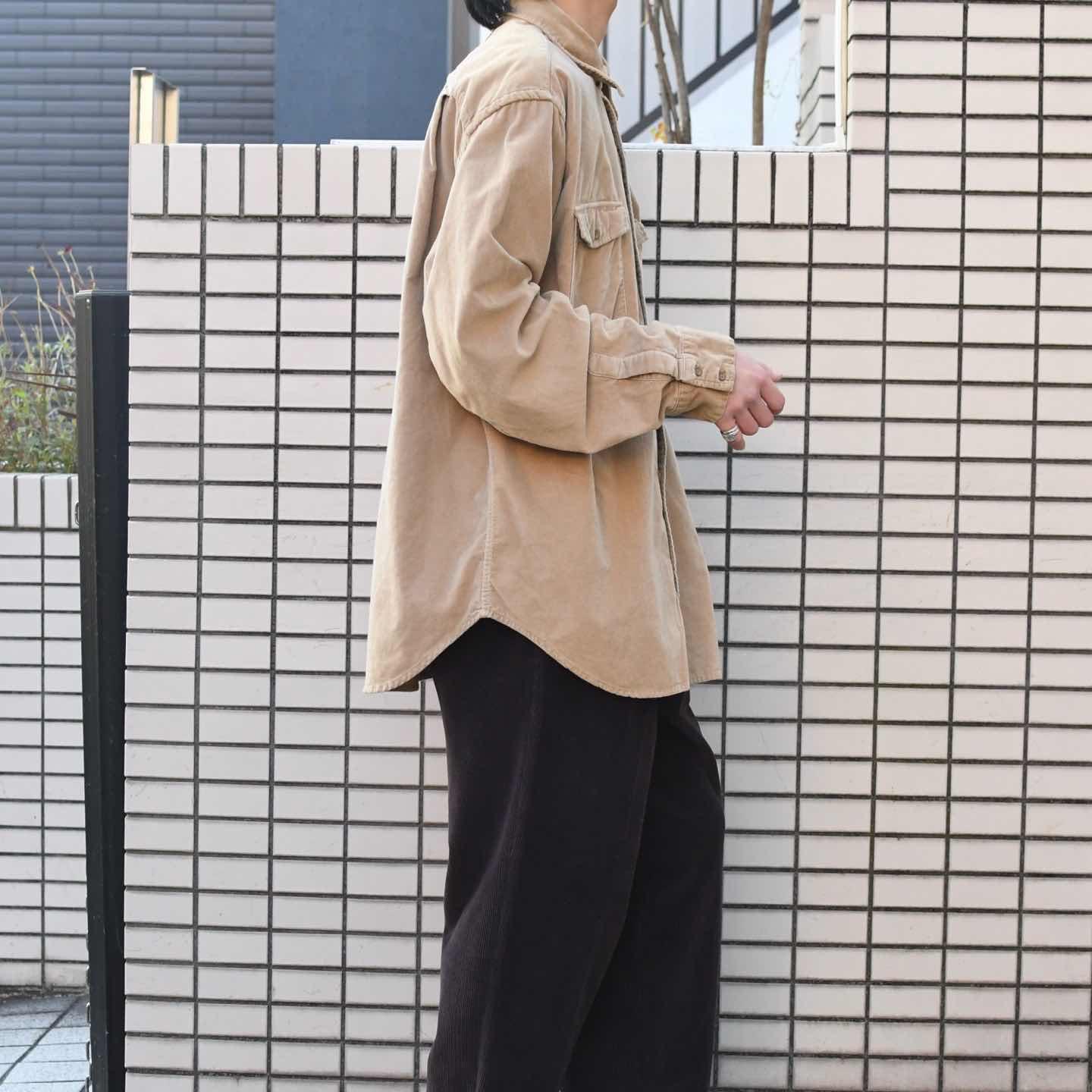 古着 オーバーサイズ 総柄シャツ コーデュロイシャツ 細畝 ボタンダウンシャツ