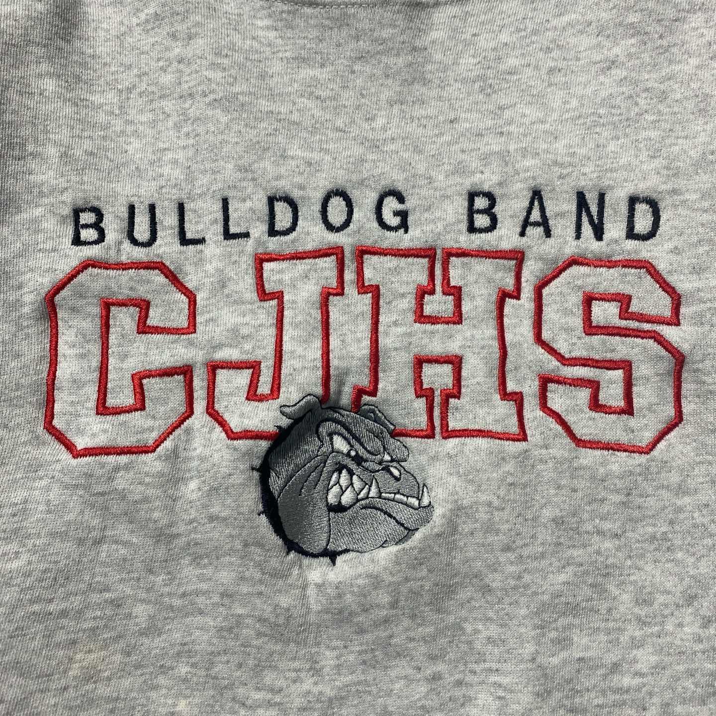 【XL】90s ヘインズ ブルドッグバンド 刺繍ロゴ グレー スウェット