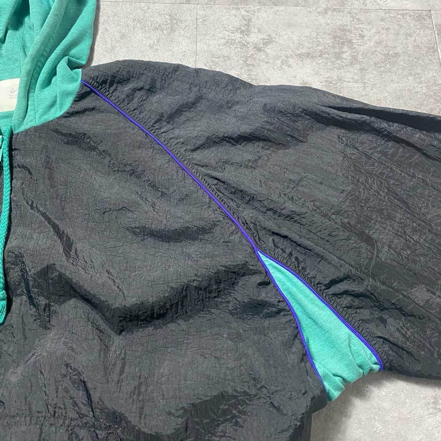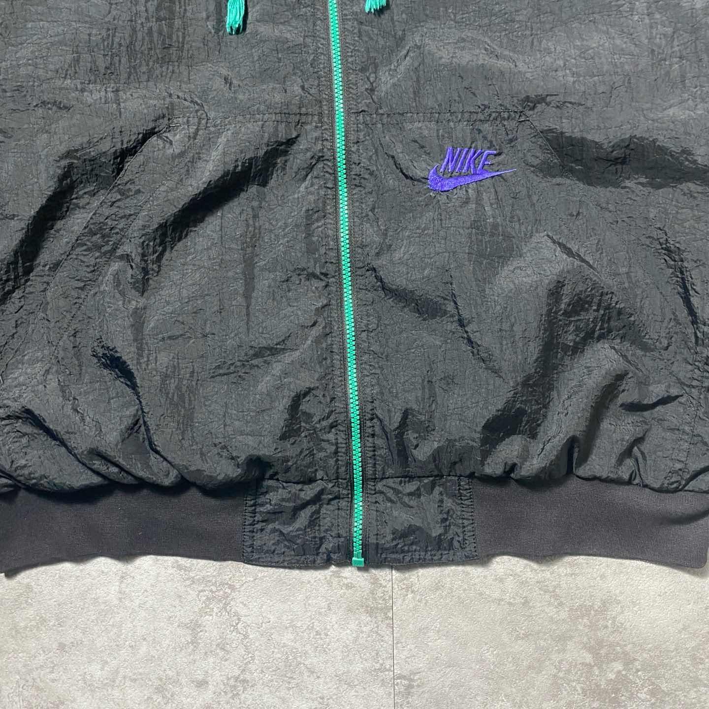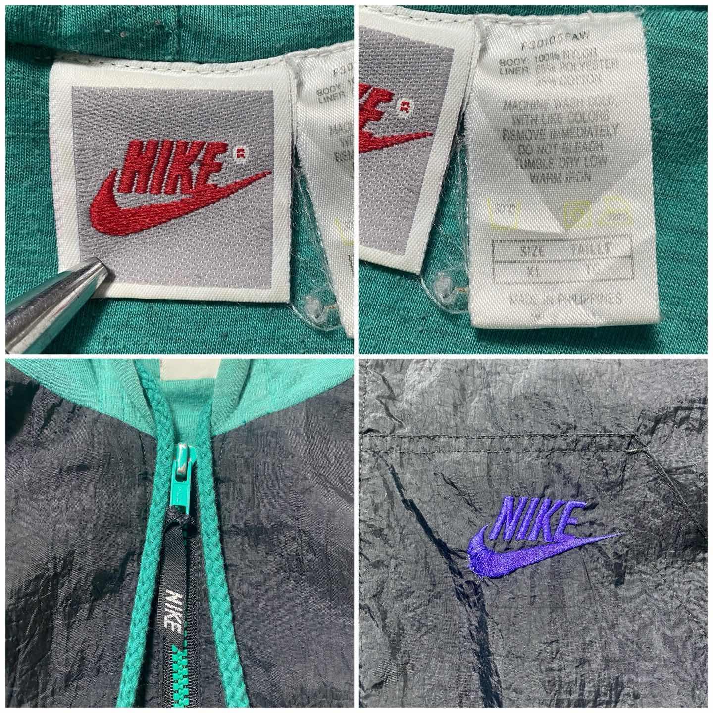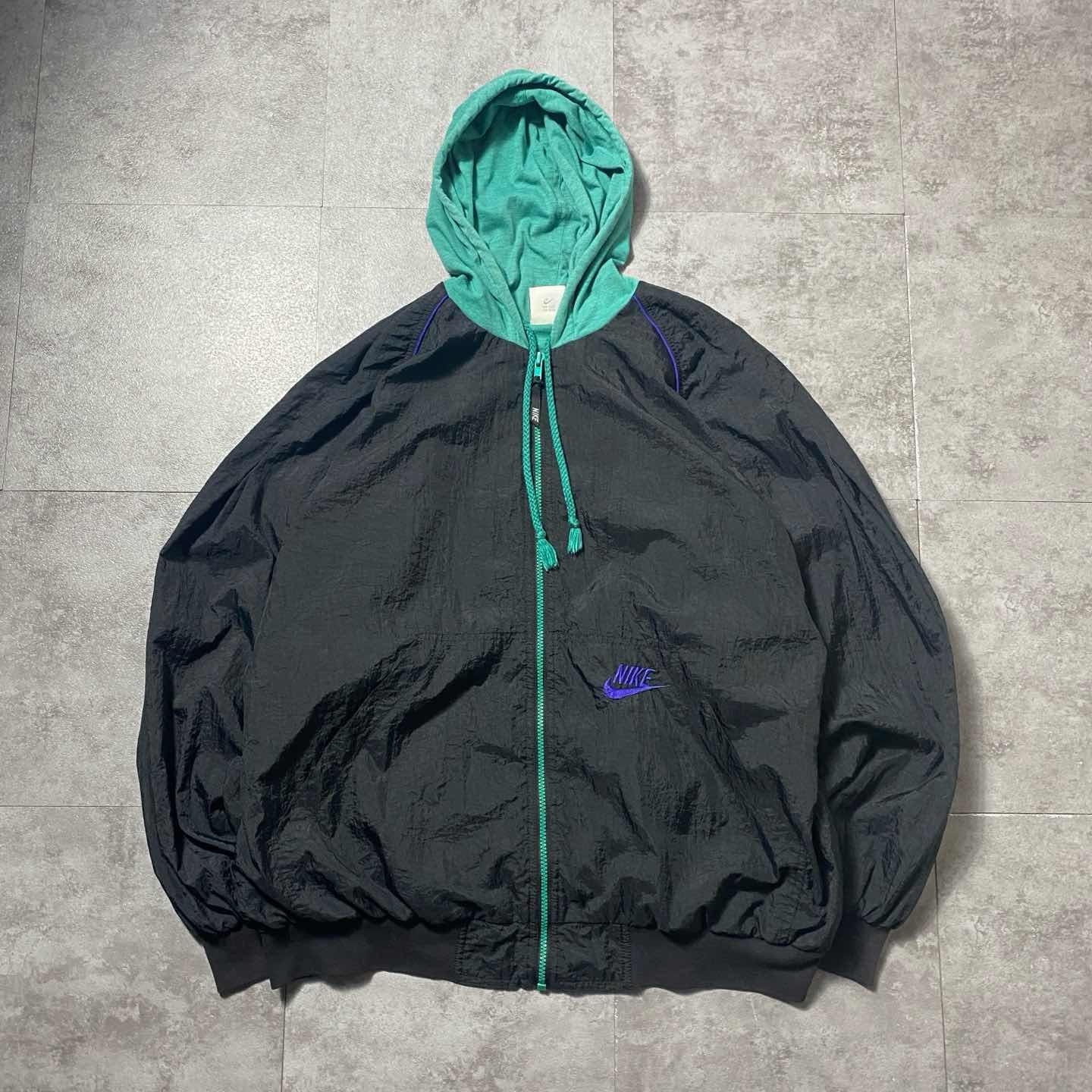 【XL】90s NIKE スウォッシュ 刺繍ロゴ フード ナイロンジャケット