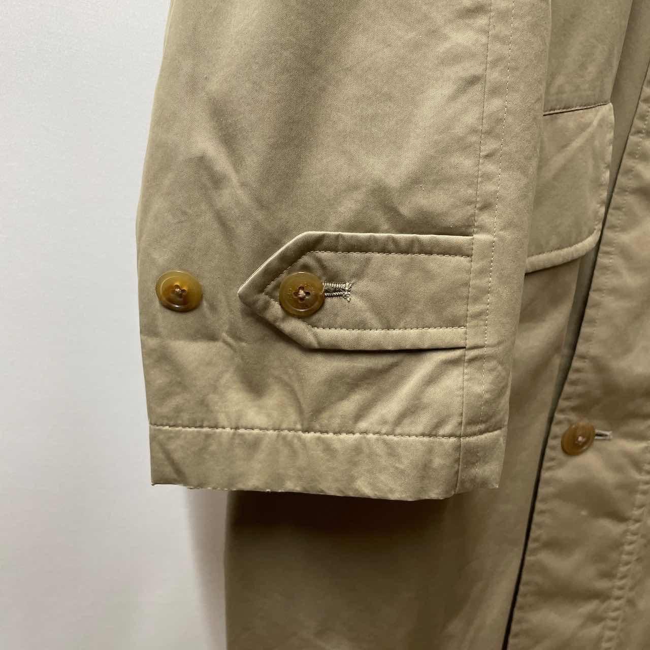 【サイズ表記】 L 【サイズ(cm)】 肩幅ラグランスリーブ 袖丈ラグランスリーブ 裄丈79 袖口(平置)16.5 腕周(平置)27 着丈93 身幅63 【商品詳細】 生産国 : ブランド:burberrys カラー :ベージュ 素材 :65%cotton 35%polyester 【コンディション】 B(ライナー、フード欠損) 【S】新品、展示品、デッドストックなど。 【A】若干の使用感はあるが、状態の良いUESD。 【B】使用感はあるが、目立つダメージや大きな汚れはない。 【C】使用感と部分的に少しダメージや汚れ有。 【D】使用感と部分的に大きなダメージや汚れ有。 ※古着故の多少の着用感うや細かい汚れがございます。古着に理解のない方のご購入はお控えください。また、撮影状況により、色味に若干の差異が生ずることがございます。 【その他】 こちらの商品は古着商品となります。全て1点のみの在庫のご用意となりますのでご注意ください。