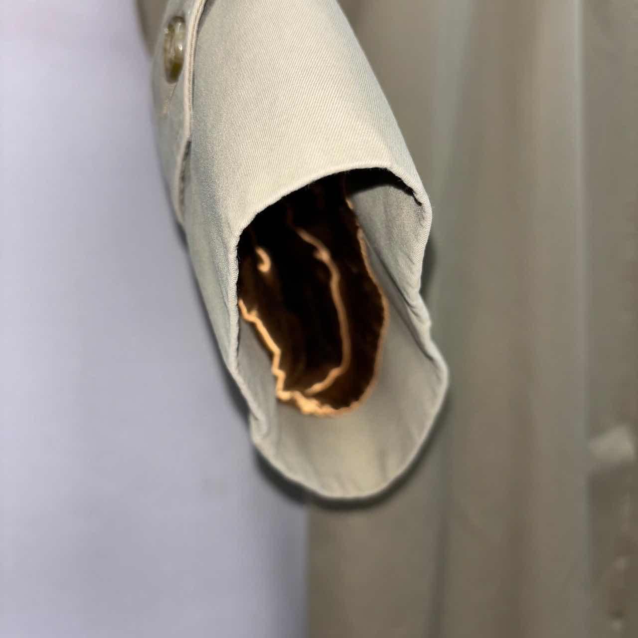 【サイズ表記】 46 short (170cm前後がジャスト) 【サイズ(cm)】 肩幅ラグランスリーブ(おおよそ54cm) 袖丈ラグランスリーブ(おおよそ57cm) 裄丈86 袖口(平置)17 腕周(平置)25 着丈100 身幅(脇下)59 【商品詳細】 生産国 :England ブランド:Burberrys カラー :ベージュ+緑の玉虫色 素材 :100% cotton 【コンディション】 B 【S】新品、展示品、デットストックなど 【A】使用感少なく、状態の良いUSED 【B】使用感あるが、目立つダメージや大きな汚れは無い。 【C】使用感と部分的にダメージや汚れ有り。 【D】使用感があり、大きなダメージや汚れ有り。 ※古着故、多少の着用感や細かい汚れがございます。古着に理解のない方のご購入はお控えいただけると幸いです。 また、撮影状況により色味に若干の差異が生じる事がございます。 【ジャンル】 ユーロヴィンテージ/EURO VINTAGE 【その他】 こちらの商品は古着商品となります。 全て1点のみの在庫となります、ご注意ください。
