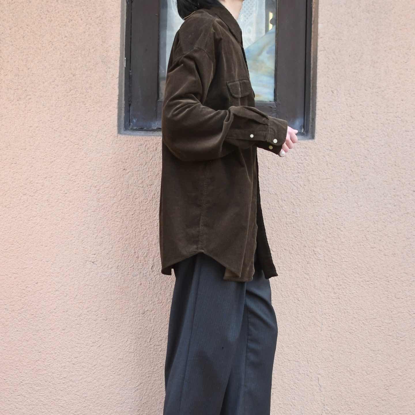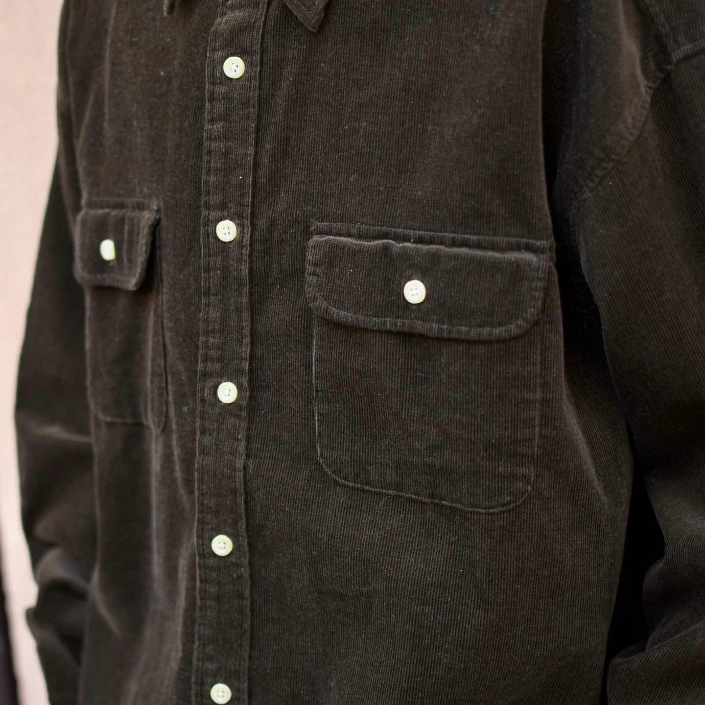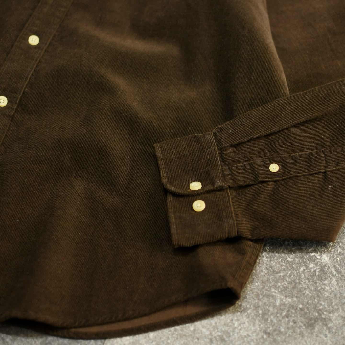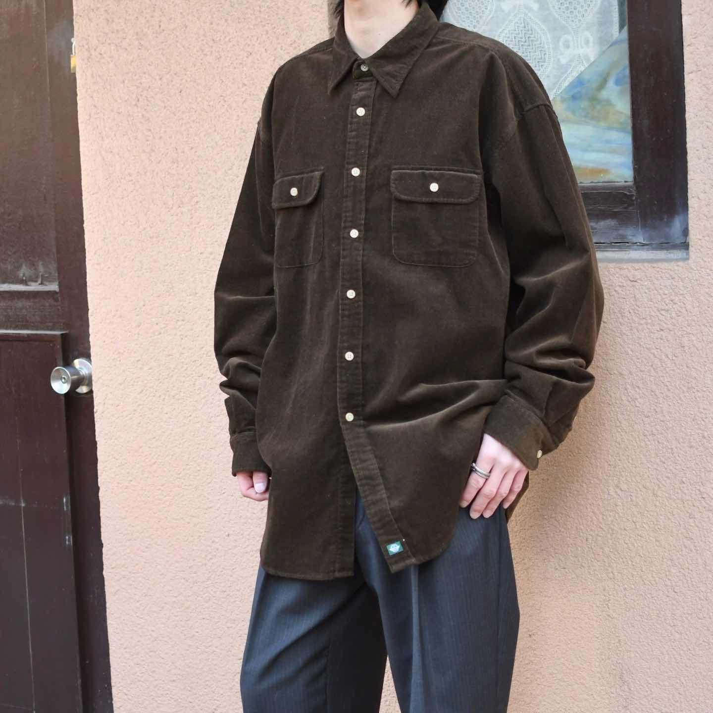 SIZE:XL 着丈82cm 肩幅59cm 身幅67cm 袖丈64cm fabric/cotton 着用画像 173cm/58kg コーデュロイシャツの中でも一際惹かれた1着。 深みのあるダークブラウン色に、コーデュロイ特有の 発色が加わり、コーデュロイシャツの持つ カジュアルさを上品な印象へと昇華した逸品です。 春先には一枚で、羽織りとしても活躍する1着としておすすめです。 ※撮影状況により、実物と多少色が異なる場合が ございます。 ※古着を取り扱っているため、気づかない汚れや ほつれ等がある場合がございます。 ※サイズは着用感で選んでおり、 表記サイズではございません。 表記サイズは説明欄の最初に記載しております。 古着 オーバーサイズ old vintage ヴィンテージ used 80's 90's アメリカ古着 ユーロ古着 POLO RALPH LAUREN Eddie Bauer OLD GAP LANDS' END ランズエンド LLBean エルエルビーン オールドギャップ エディーバウアー ラルフローレン ブルックスブラザーズ Brooks Brothers シャツ などがお好きな方 #vintage #オーバーサイズ #old #used #90s #80s #古着 #ヴィンテージ #アメリカ古着 #ユーロ古着 #LLBean #エルエルビーン #EddieBauer #エディーバウアー #oldgap #オールドギャップ #LANDSEND #ランズエンド #NAUTICA #ノーティカ #ラルフローレン #POLORALPHLAUREN #ブルックスブラザーズ #BrooksBrothers #Dockers #長袖シャツ #シャツ #コーデュロイシャツ