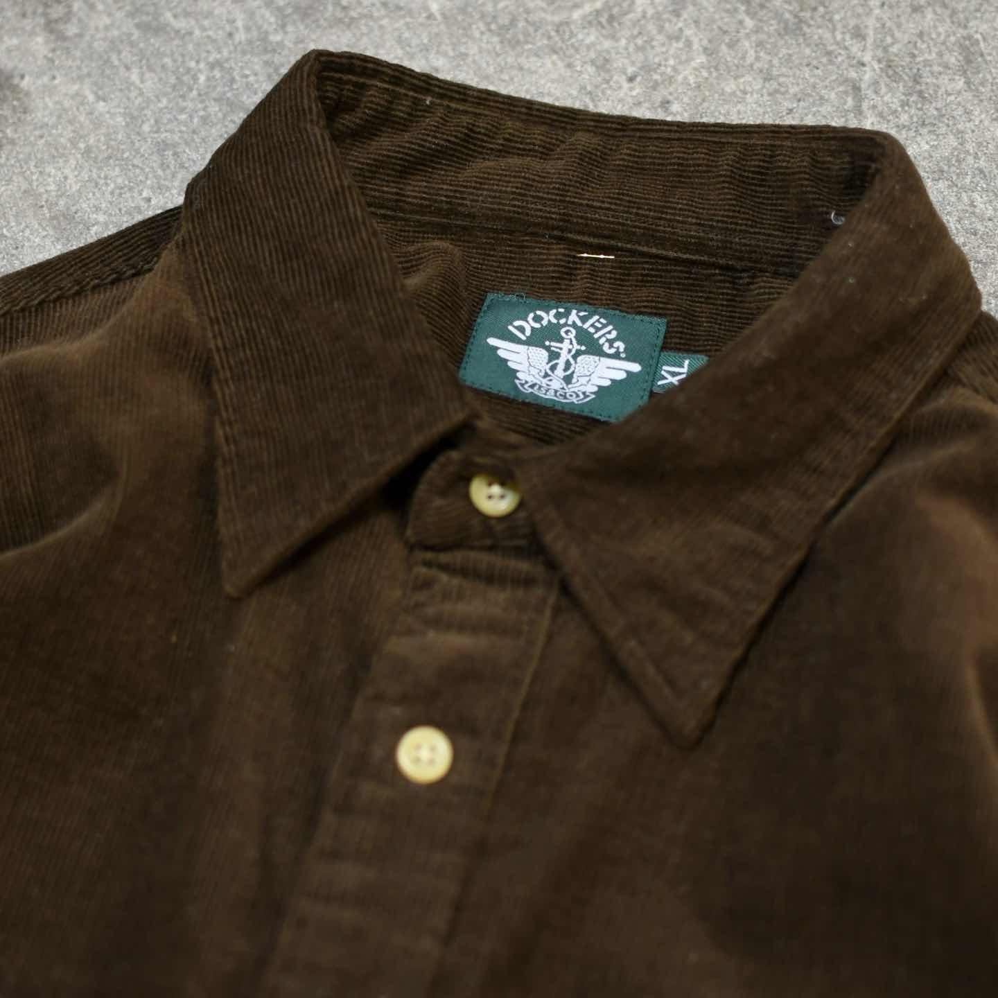 古着 Dockers コーデュロイシャツ ブラウン 茶色 長袖シャツ シャツ