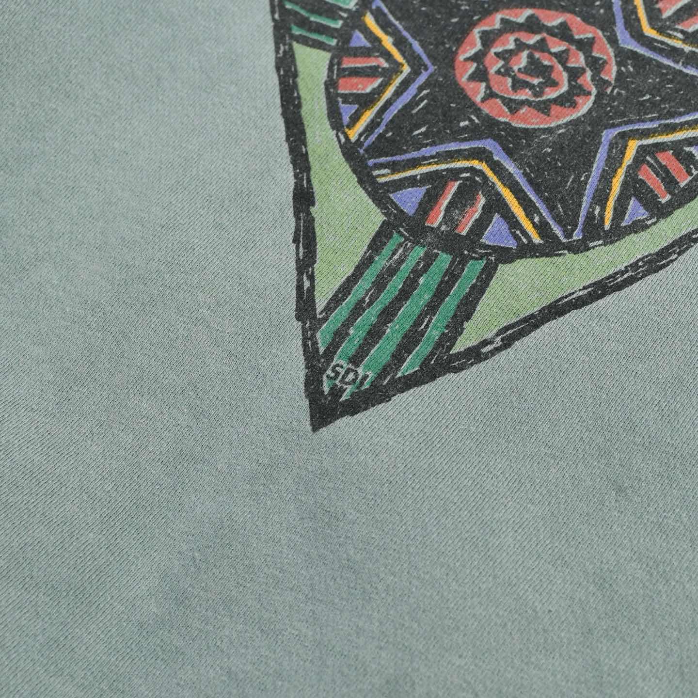 SIZE:L 着丈68cm 肩幅62cm 身幅58cm 袖丈60cm fabric/cotton・poly made in USA 着用画像 173cm/58kg どこかスピリチュアルさや、エスニック寄りな 雰囲気を纏うプリントデザイン。 恐らく深い意味はなく、ファッションとして プリントされた文字やフォント、 そして独特なボディの色合いに惹かれました。 どうもブランドや背景、クオリティなどに 引っ張られがちですが、一旦すべて忘れて 初心に帰ればこんな1着を手に取る気がしました。 そんな選び方も悪くないなと。 よくわからん面白いスウェット。 ※撮影状況により、実物と多少色が異なる場合が ございます。 ※古着を取り扱っているため、気づかない汚れや ほつれ等がある場合がございます。 ※サイズは着用感で選んでおり、 表記サイズではございません。 表記サイズは説明欄の最初に記載しております。 古着 オーバーサイズ old vintage ヴィンテージ used 80's 90's アメリカ古着 ユーロ古着 POLO RALPH LAUREN Eddie Bauer OLD GAP LANDS' END ランズエンド LLBean エルエルビーン オールドギャップ エディーバウアー ラルフローレン ブルックスブラザーズ Brooks Brothers 黄緑 などがお好きな方 #vintage #オーバーサイズ #old #used #90s #80s #古着 #ヴィンテージ #アメリカ古着 #ユーロ古着 #LLBean #エルエルビーン #EddieBauer #エディーバウアー #oldgap #オールドギャップ #LANDSEND #ランズエンド #NAUTICA #ノーティカ #ラルフローレン #POLORALPHLAUREN #ブルックスブラザーズ #BrooksBrothers #スウェット #トレーナー #プリントスウェット