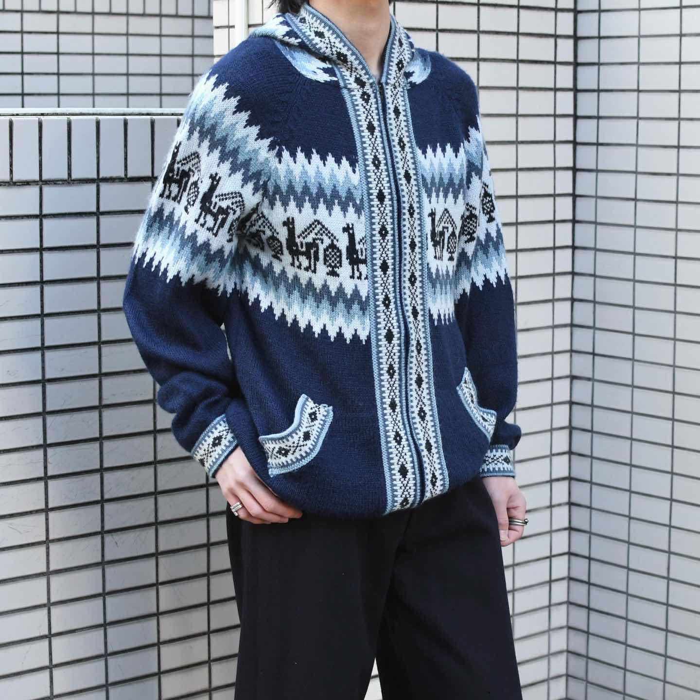 古着 ノルディックニット ニットフーディ デザインニット ジップアップ
