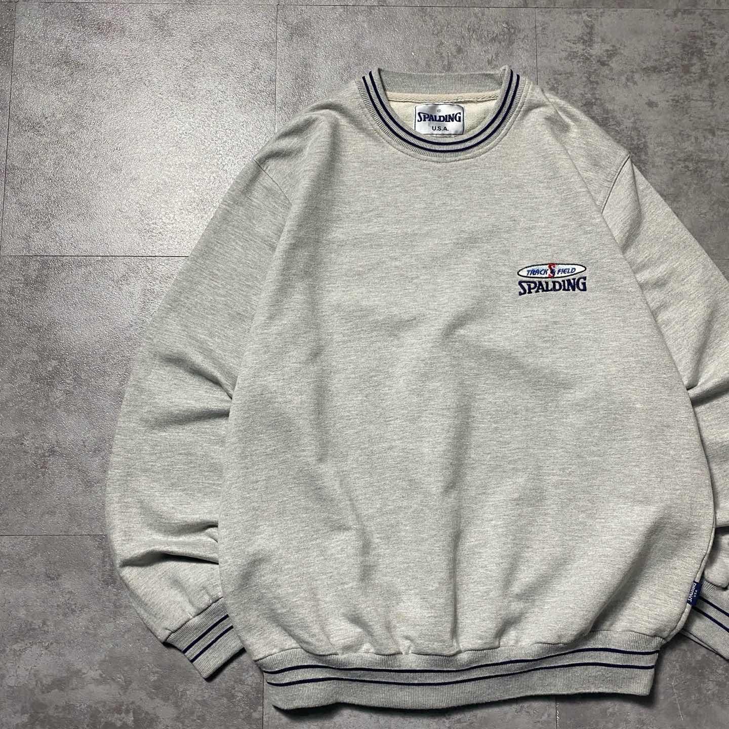 90s SPALDING 刺繍ワンポイント ラインリブ グレー スウェット